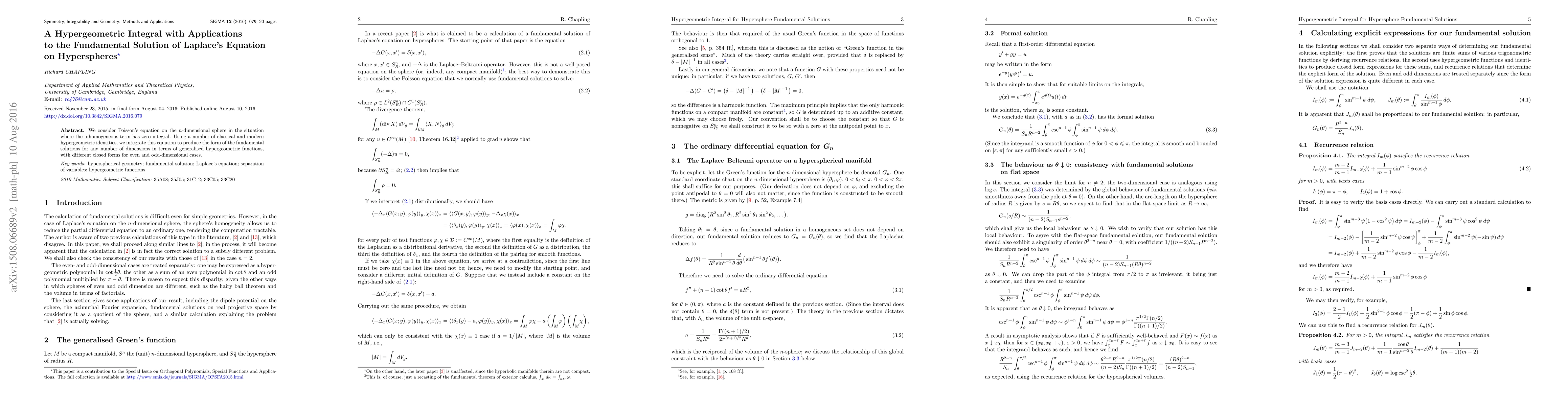 We consider Poisson's equation on the $n$-dimensional sphere in the situation where the inhomogeneous term has zero integral. Using a number of classical and modern hypergeometric identities, we integrate this equation to produce the form of the fundamental solutions for any number of dimensions in terms of generalised hypergeometric functions, with different closed forms for even and odd-dimensional cases.