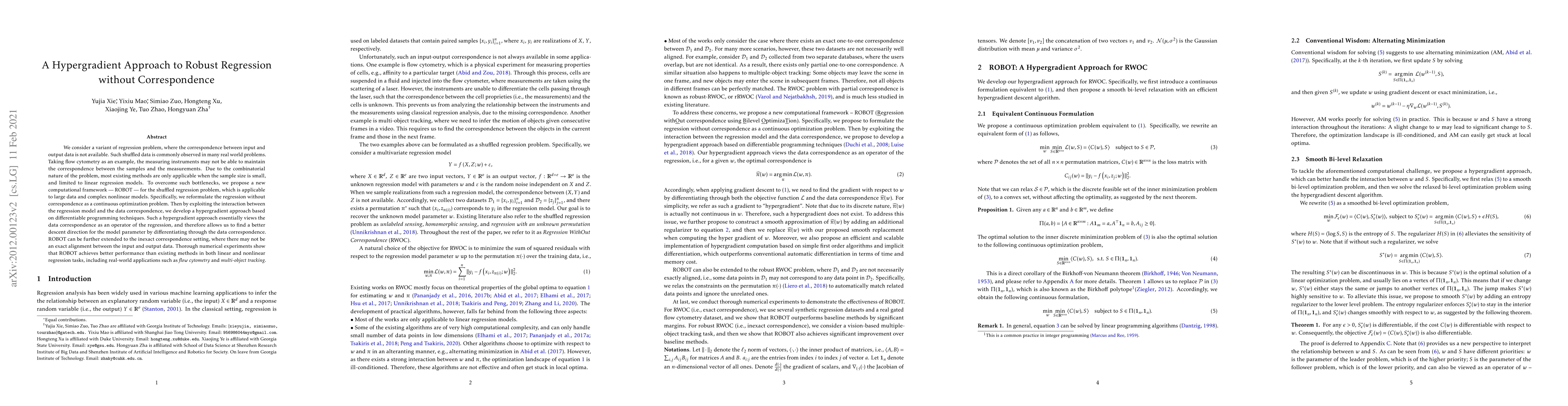 Researchers propose a new method called ROBOT for robust regression without correspondence, achieving better performance in linear and nonlinear regression tasks, including real-world applications like flow cytometry.