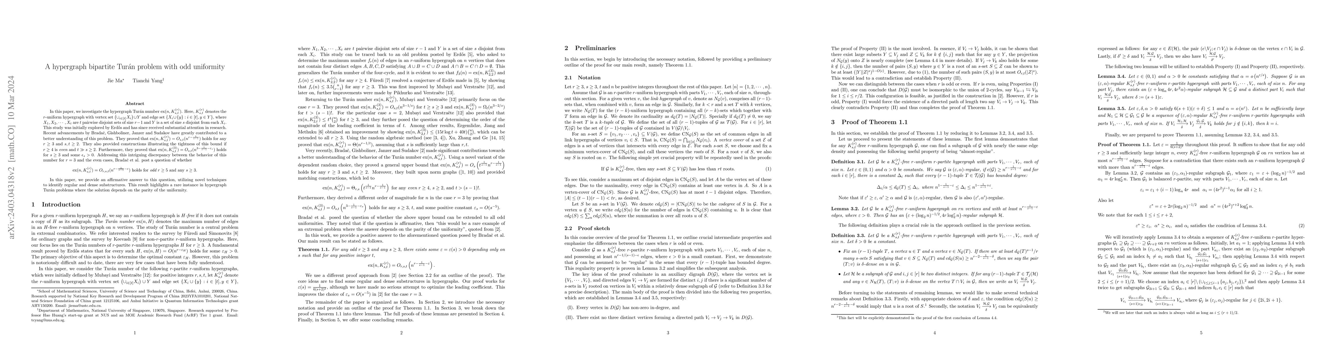 The paper utilizes novel techniques to identify regular and dense substructures in hypergraphs, focusing on the bipartite Turán problem with odd uniformity.