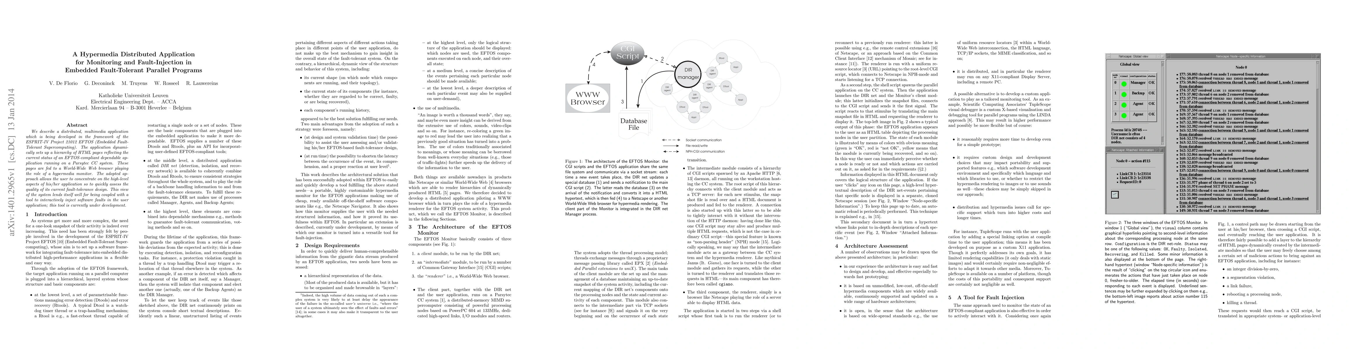 We describe a distributed, multimedia application which is being developed in the framework of the ESPRIT-IV Project 21012 EFTOS (Embedded Fault-Tolerant Supercomputing). The application dynamically sets up a hierarchy of HTML pages reflecting the current status of an EFTOS-compliant dependable application running on a Parsytec CC system. These pages are fed to a World-Wide Web browser playing the role of a hypermedia monitor. The adopted approach allows the user to concentrate on the high-level aspects of his/her application so to quickly assess the quality of its current fault-tolerance design. This view of the system lends itself well for being coupled with a tool to interactively inject software faults in the user application; this tool is currently under development.