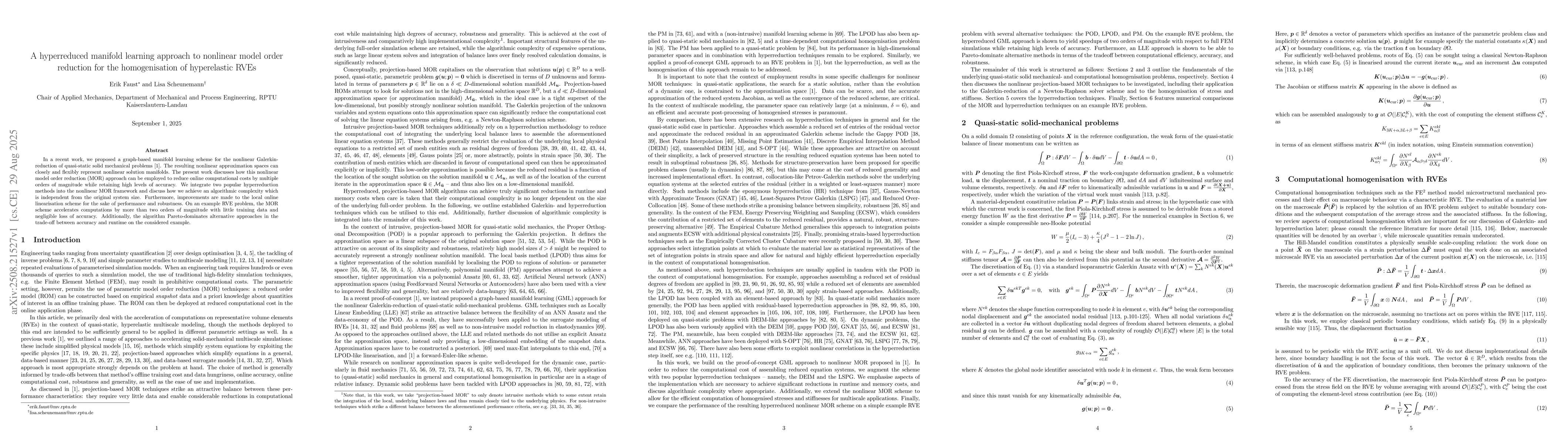In a recent work, we proposed a graph-based manifold learning scheme for the nonlinear Galerkin-reduction of quasi-static solid mechanical problems [1]. The resulting nonlinear approximation spaces can closely and flexibly represent nonlinear solution manifolds. The present work discusses how this nonlinear model order reduction (MOR) approach can be employed to reduce online computational costs by multiple orders of magnitude while retaining high levels of accuracy. We integrate two popular hyperreduction methods into the nonlinear MOR framework and discuss how we achieve an algorithmic complexity which is independent from the original system size. Furthermore, improvements are made to the local online linearisation scheme for the sake of performance and robustness. On an example RVE problem, the MOR scheme accelerates computations by more than two orders of magnitude with little training data and negligible loss of accuracy. Additionally, the algorithm Pareto-dominates alternative approaches in the trade-off between accuracy and runtime on the considered example.