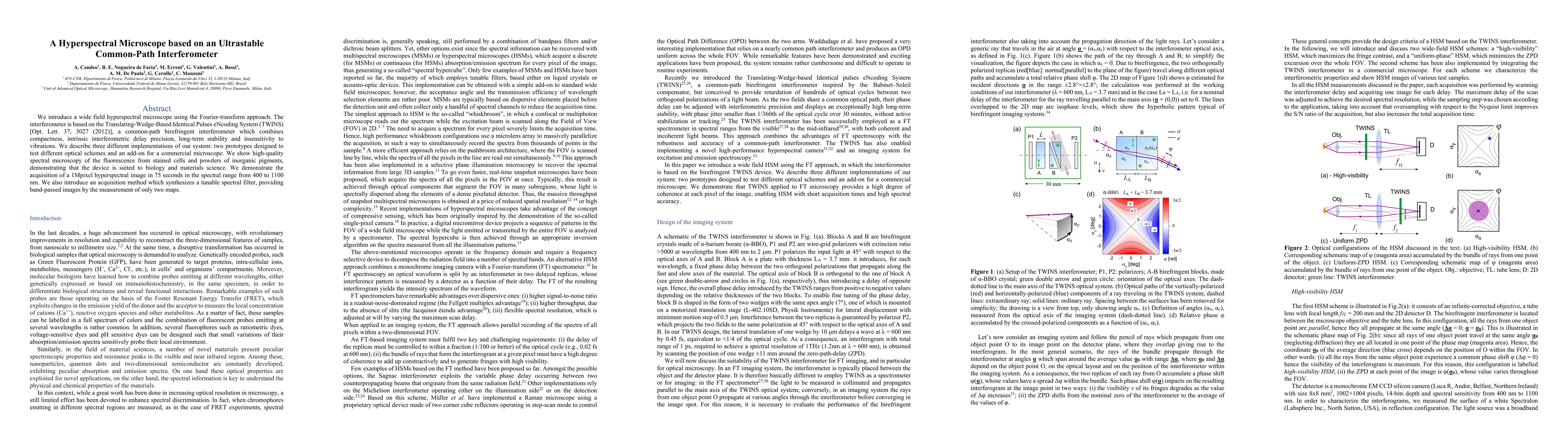 This paper presents a hyperspectral microscope utilizing a stable common-path interferometer based on the TWINS system, achieving high-quality spectral microscopy for biological and material samples. The device can acquire a 1Mpixel hyperspectral image in 75 seconds and employs a tunable spectral filter method.