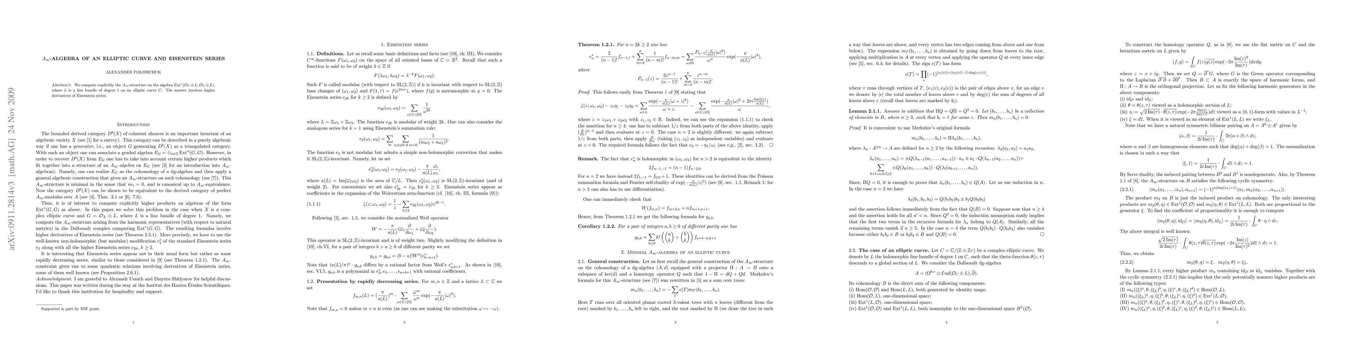 We compute explicitly the A-infinity structure on the Ext-algebra of the collection $({\mathcal O}_C, L)$, where $L$ is a line bundle of degree 1 on an elliptic curve $C$. The answer involves higher derivatives of Eisenstein series.
