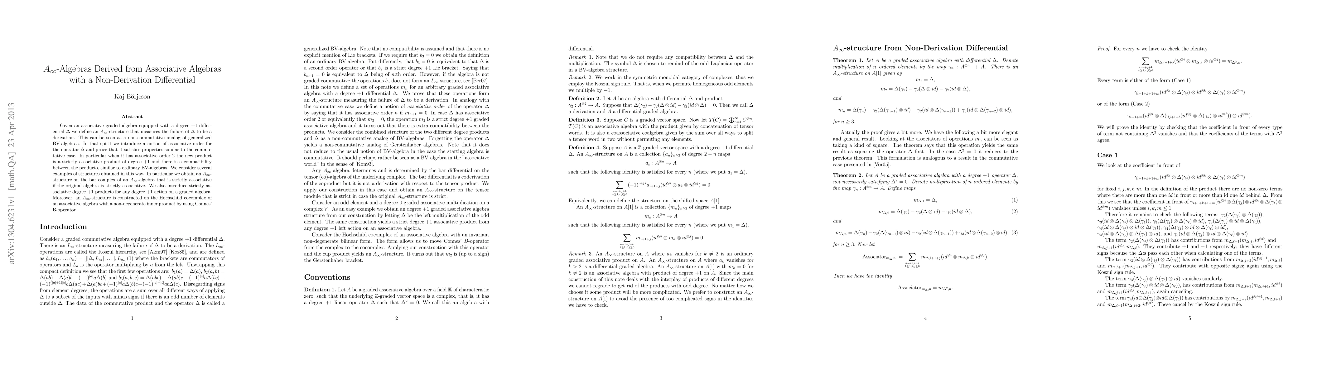 This paper defines an A-infinity algebra derived from an associative algebra with a degree +1 differential that measures its non-derivation nature. It introduces associative order for the differential and proves properties similar to commutative cases, establishing compatibility and strictly associative products. Examples include A-infinity structures on the bar complex and Hochschild cocomplex using Connes' B-operator.