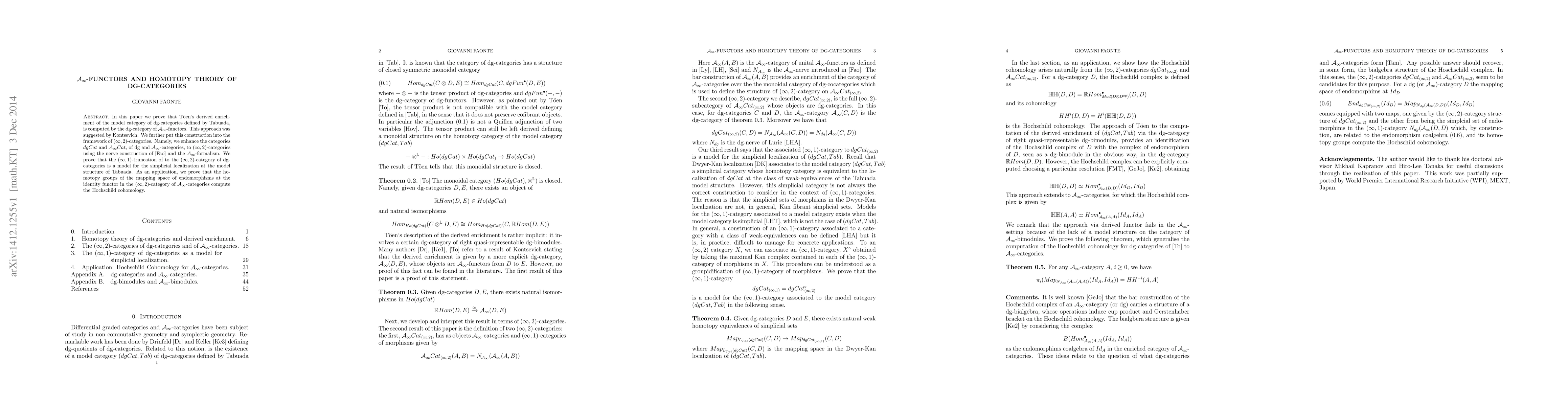 This paper demonstrates that Toen's derived enrichment of dg-categories is computed by the dg-category of A-infinity functors, enhancing these categories to (infinity,2)-categories. It also proves that the homotopy groups of mapping spaces in this framework compute the Hochschild cohomology.