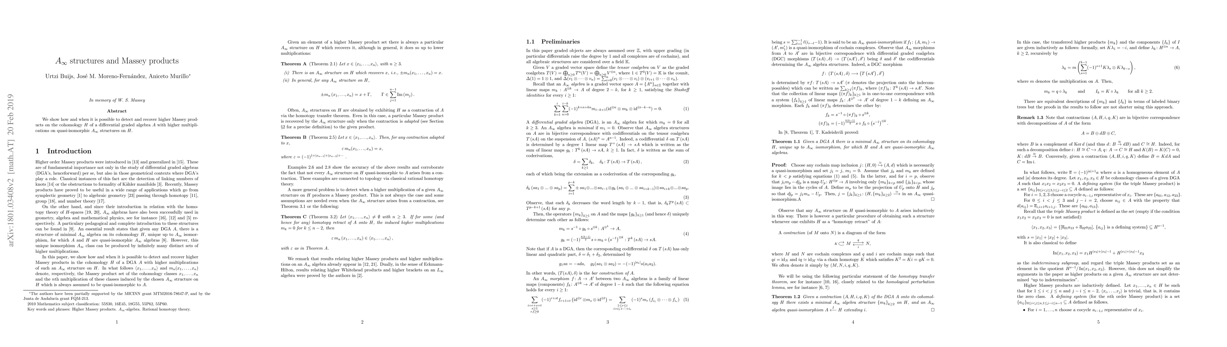 Summary: This paper demonstrates how to identify and reconstruct higher Massey products in the cohomology of a differential graded algebra, leveraging quasi-isomorphic $A_\infty$ structures with higher multiplications. It establishes conditions for detecting these products.