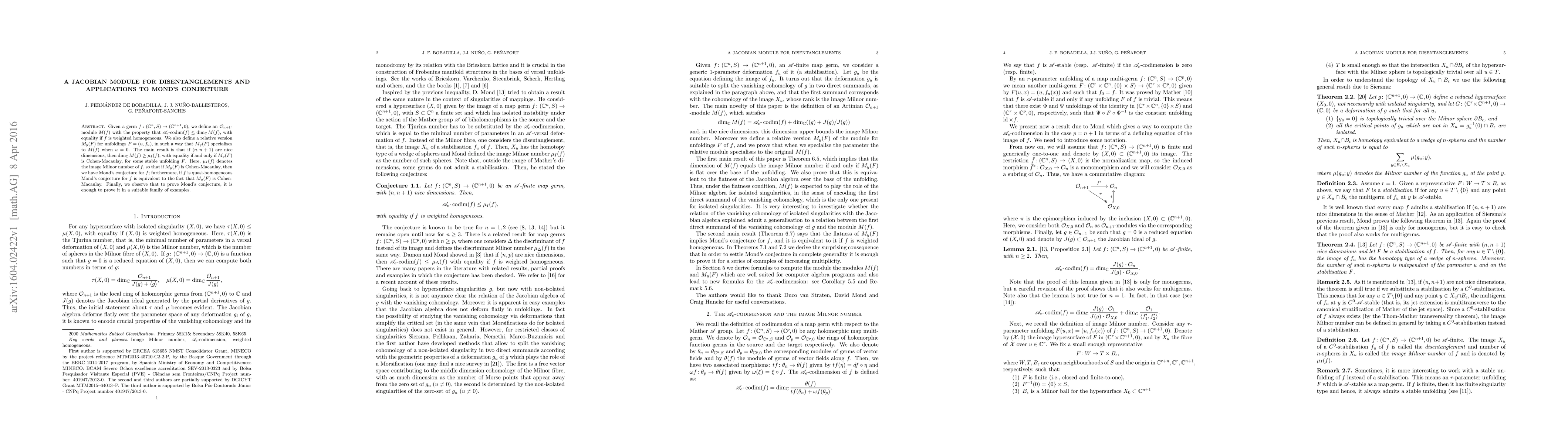 This paper introduces a Jacobian module $M(f)$ for holomorphic maps from $\mathbb C^n$ to $\mathbb C^{n+1}$, showing it bounds the $\mathscr A$-codimension and the image Milnor number. The main result establishes that Mond's conjecture holds if $M_y(F)$ is Cohen-Macaulay for some stable unfolding $F$.