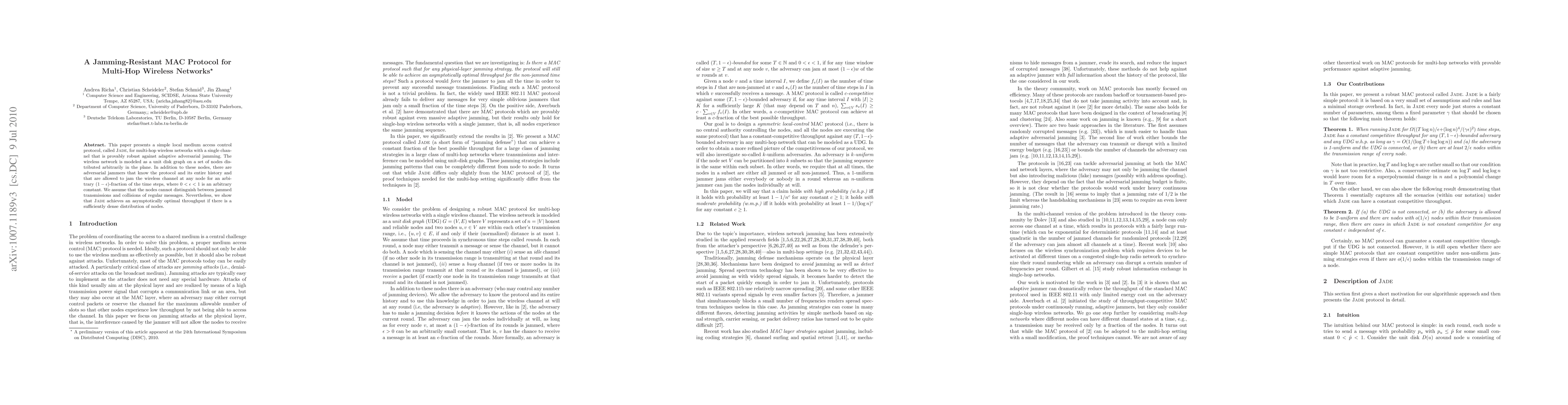 This paper introduces \textsc{Jade}, a jamming-resistant MAC protocol for multi-hop wireless networks, which ensures robust communication despite adaptive adversarial jamming. The protocol achieves asymptotically optimal throughput under sufficiently dense node distribution, even when nodes cannot distinguish between jammed signals and regular message collisions.