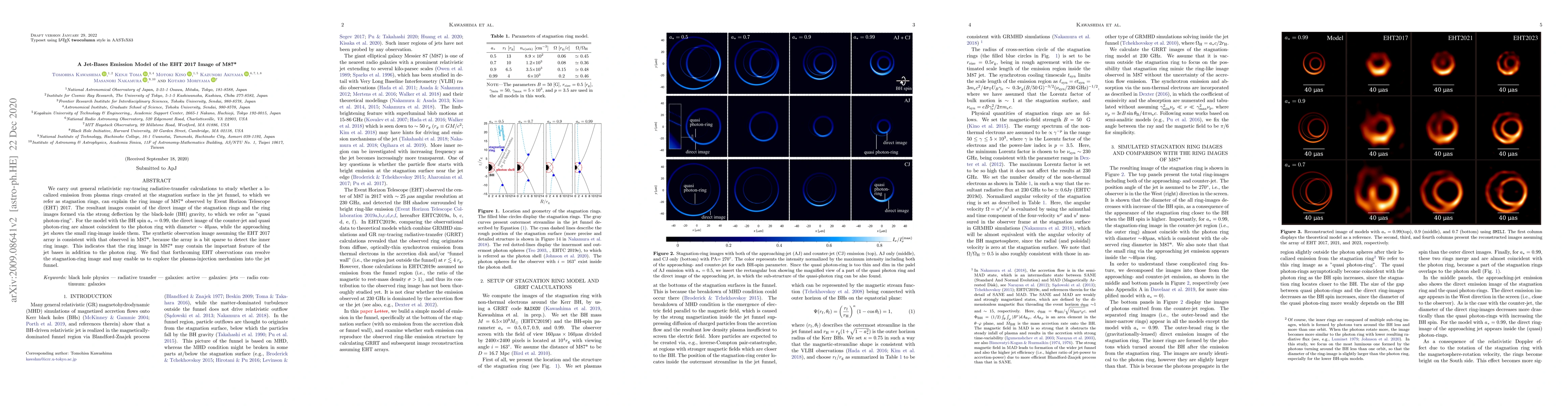 This paper uses general relativistic ray-tracing to model the EHT 2017 image of M87*, proposing that emission from stagnation rings at the jet's base explains the observed ring. The model suggests that future EHT observations could reveal the stagnation rings, providing insights into the jet's plasma-injection mechanism.