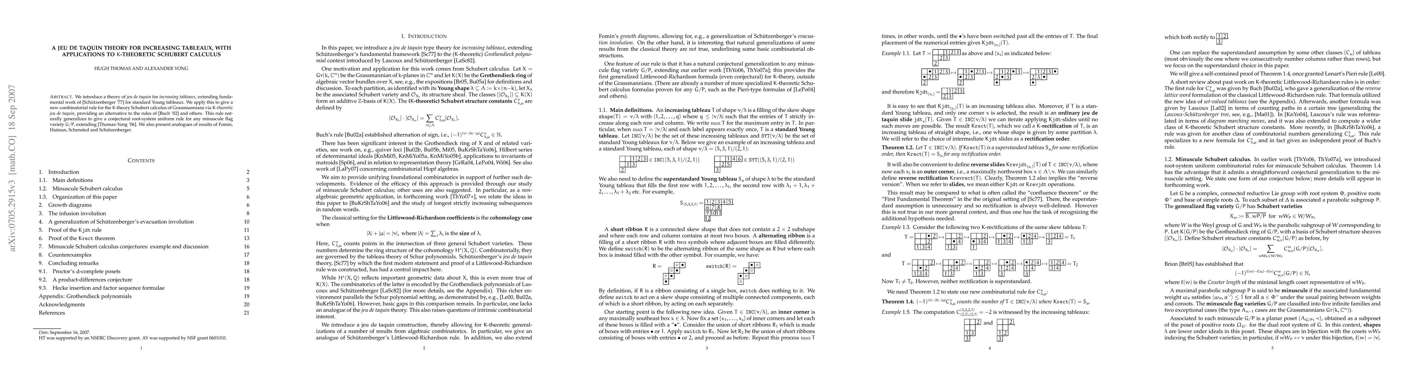 The paper introduces a jeu de taquin theory for increasing tableaux and applies it to derive a new combinatorial rule for K-theoretic Schubert calculus in Grassmannians, offering an alternative to existing rules and extending to conjecture a uniform rule for minuscule flag varieties.