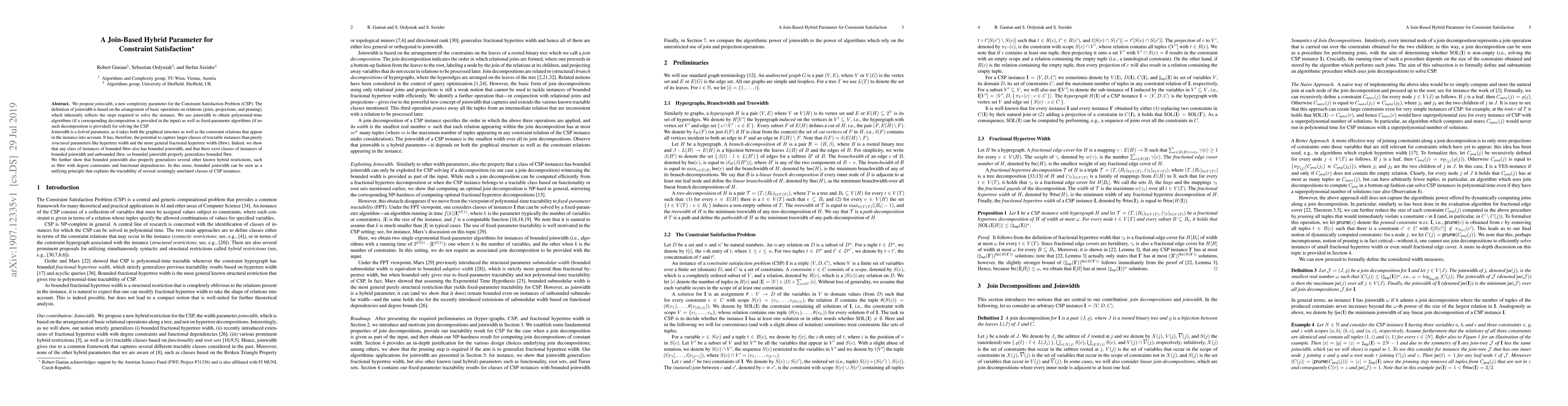 This paper introduces joinwidth, a new hybrid complexity parameter for solving the Constraint Satisfaction Problem (CSP), which combines both structural and relational aspects. It demonstrates that joinwidth can yield polynomial-time and fixed-parameter algorithms for CSP, and shows that it generalizes other known parameters like fractional hypertree width and hybrid restrictions.