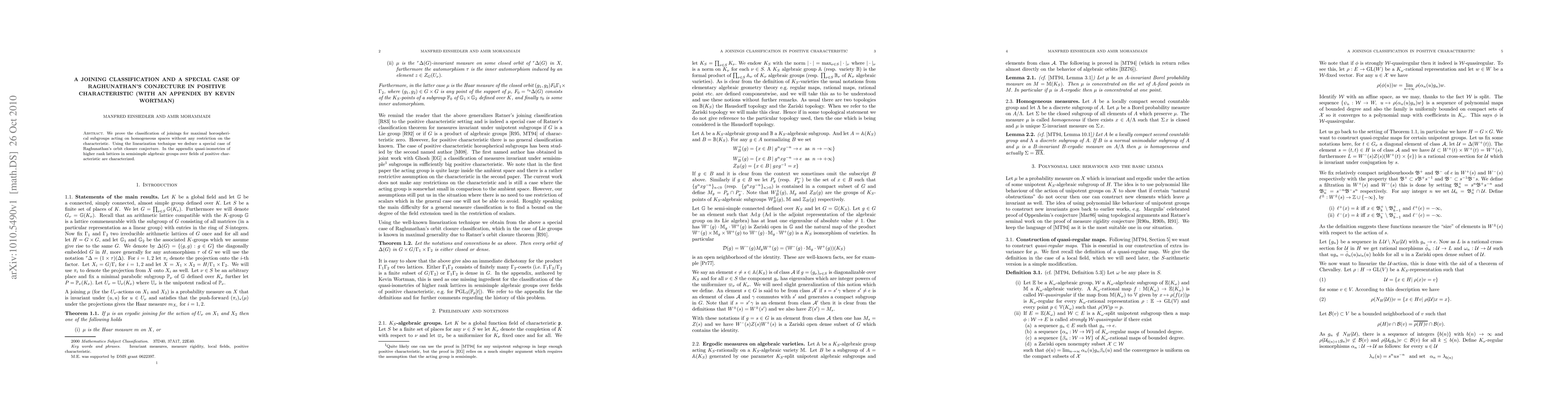 We prove the classification of joinings for maximal horospherical subgroups acting on homogeneous spaces without any restriction on the characteristic. Using the linearization technique we deduce a special case of Raghunathan's orbit closure conjecture. In the appendix quasi-isometries of higher rank lattices in semisimple algebraic groups over fields of positive characteristic are characterized.