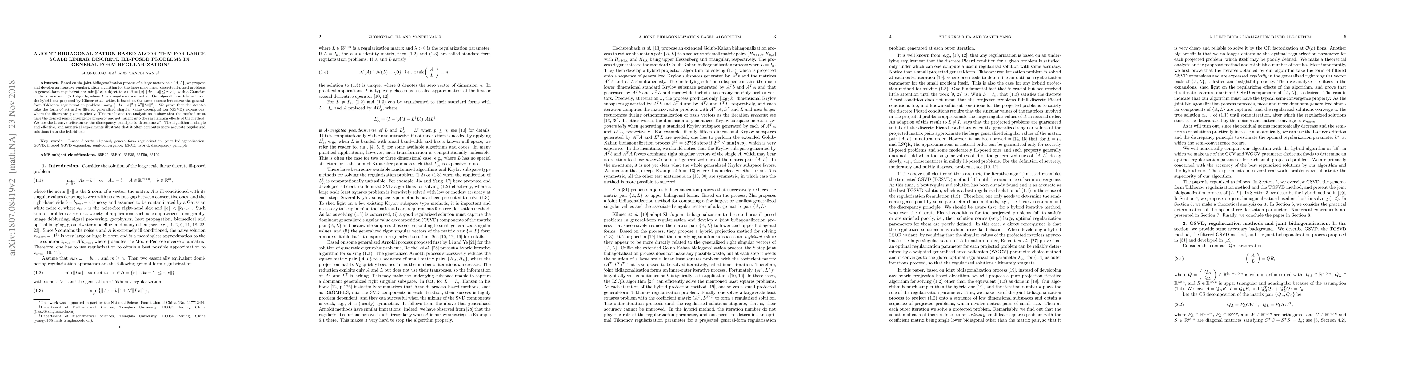 This paper proposes a joint bidiagonalization-based iterative regularization algorithm for large-scale linear discrete ill-posed problems, differing from the hybrid method by solving a general-form regularization problem. The algorithm demonstrates semi-convergence properties and superior accuracy in numerical experiments compared to existing methods.