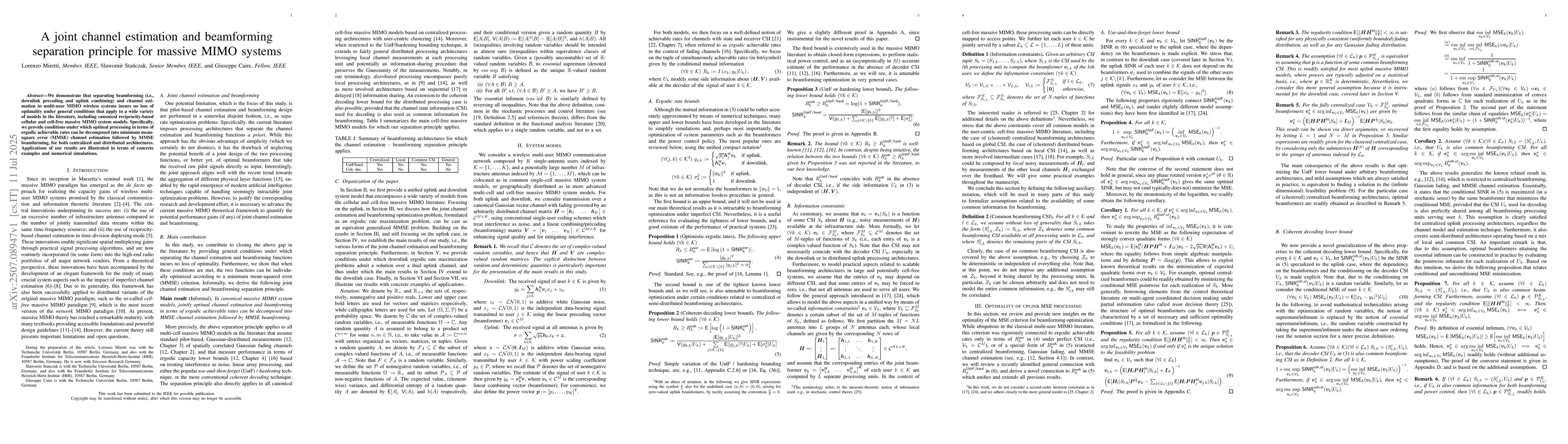 We demonstrate that separating beamforming (i.e., downlink precoding and uplink combining) and channel estimation in multi-user MIMO wireless systems incurs no loss of optimality under general conditions that apply to a wide variety of models in the literature, including canonical reciprocity-based cellular and cell-free massive MIMO system models. Specifically, we provide conditions under which optimal processing in terms of ergodic achievable rates can be decomposed into minimum mean-square error (MMSE) channel estimation followed by MMSE beamforming, for both centralized and distributed architectures. Applications of our results are illustrated in terms of concrete examples and numerical simulations.