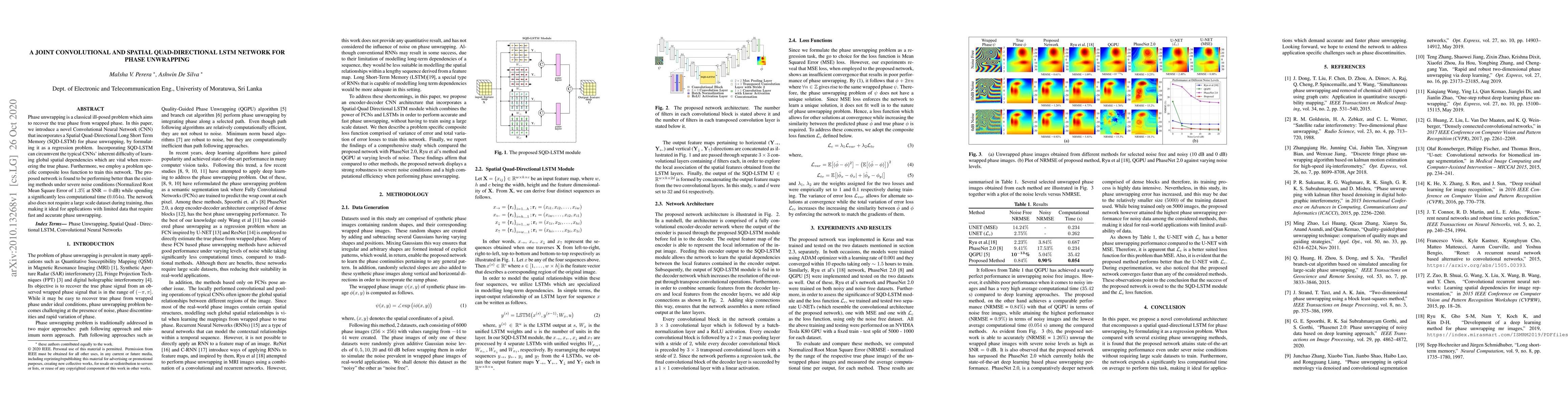 A novel convolutional architecture that combines a spatial quad-directional LSTM for phase unwrapping, formulated as a regression problem.