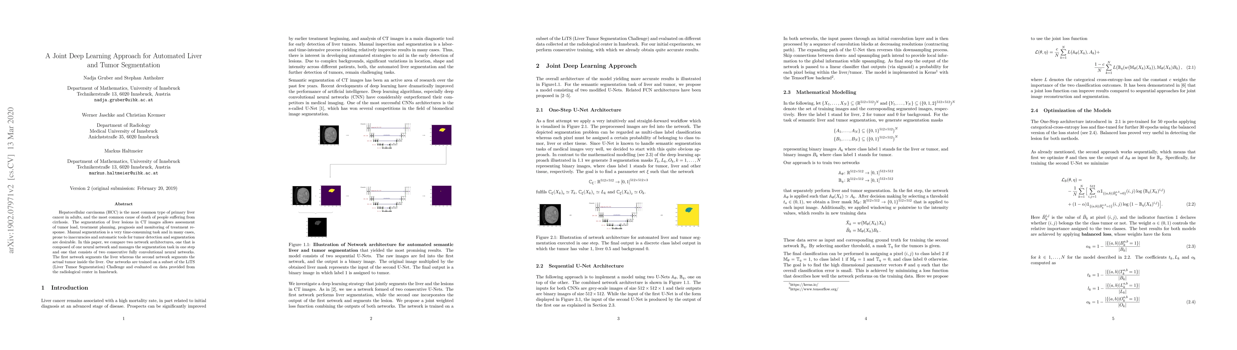 This paper proposes a joint deep learning approach for automated segmentation of liver and tumors in CT images, comparing a one-step neural network with a two-step architecture that first segments the liver and then the tumor. The method is trained and evaluated on data from the LiTS Challenge.