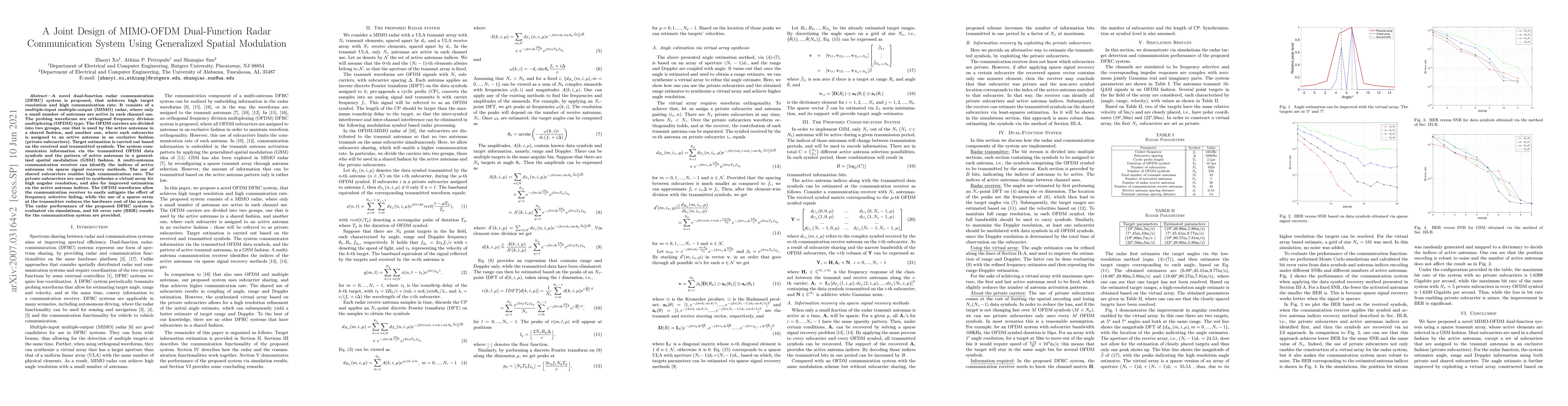This paper proposes a dual-function radar communication system using MIMO-OFDM and generalized spatial modulation, achieving high target resolution and communication rates through shared and private subcarriers. Simulation results demonstrate effective target estimation and reduced hardware costs.