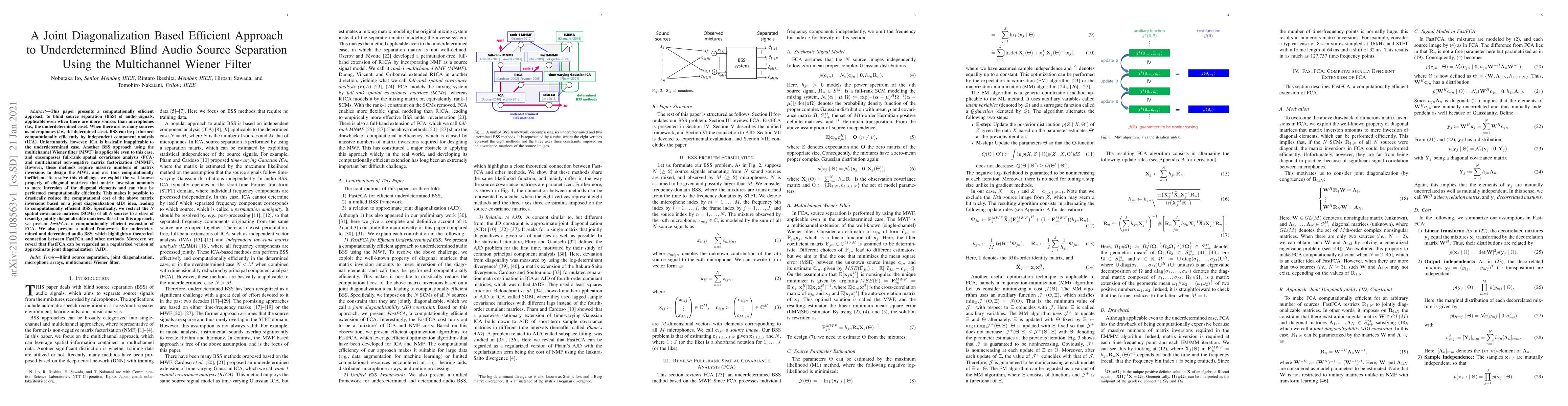 This paper proposes a computationally efficient method for blind audio source separation in both underdetermined and determined cases using joint diagonalization and the multichannel Wiener filter. It introduces FastFCA, an efficient extension of full-rank spatial covariance analysis, and provides a unified framework highlighting connections between different BSS techniques.