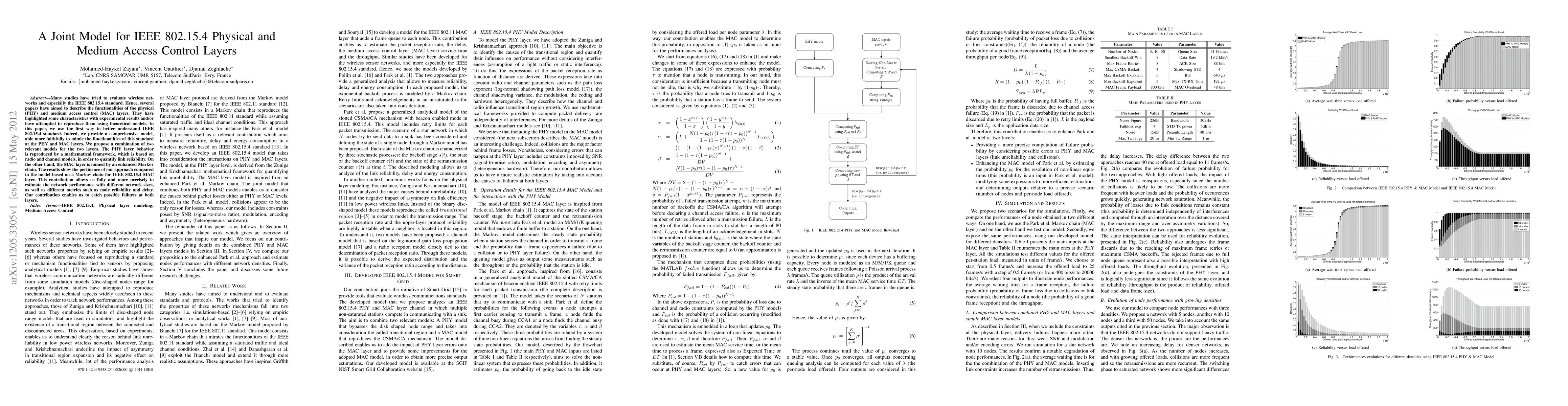 This paper proposes a joint model combining mathematical and Markov chain approaches to accurately represent the IEEE 802.15.4 standard's physical and medium access control layers, demonstrating improved network performance estimation and failure detection.