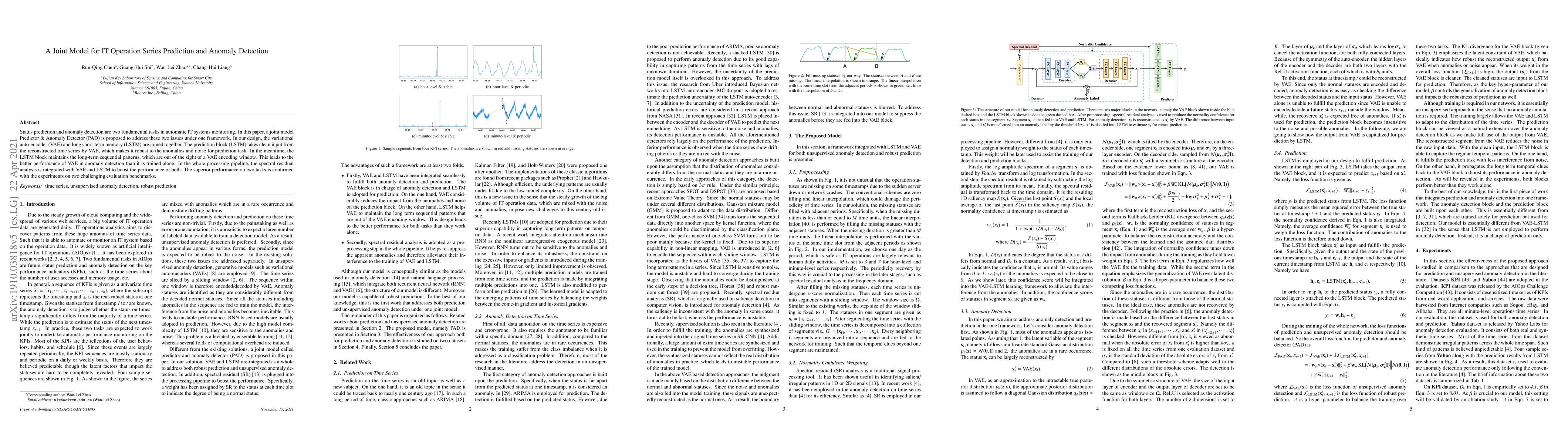 This paper proposes a joint model, Predictor & Anomaly Detector (PAD), combining variational auto-encoder (VAE) and long short-term memory (LSTM) to predict IT operation series and detect anomalies. The LSTM enhances VAE's robustness to noise and anomalies, while spectral residual analysis boosts overall performance.