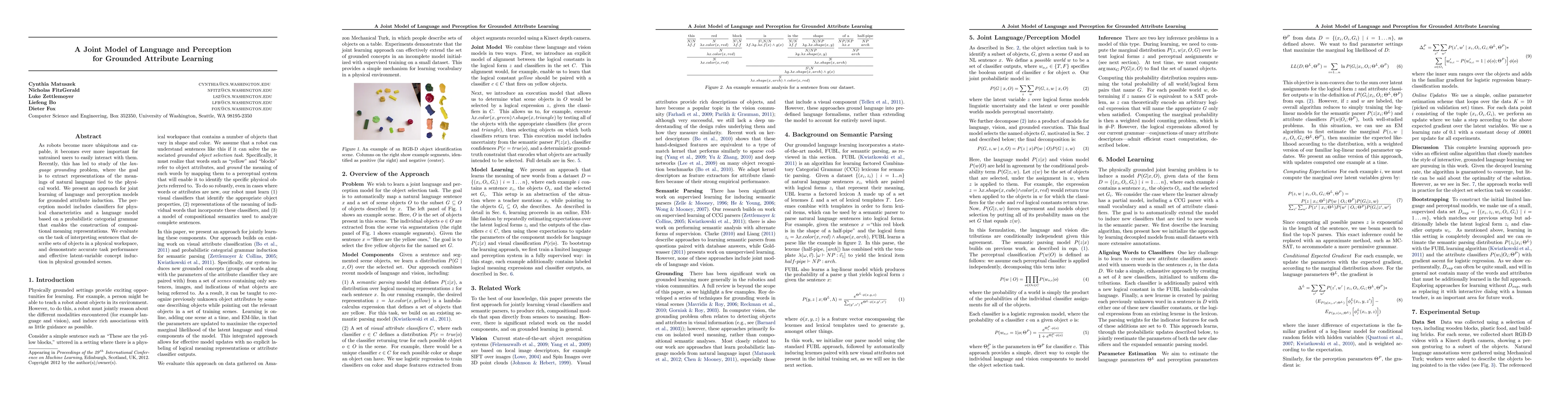 Researchers developed a joint model of language and perception for robots to learn attributes of objects in their environment, demonstrating accurate task performance and effective concept induction.