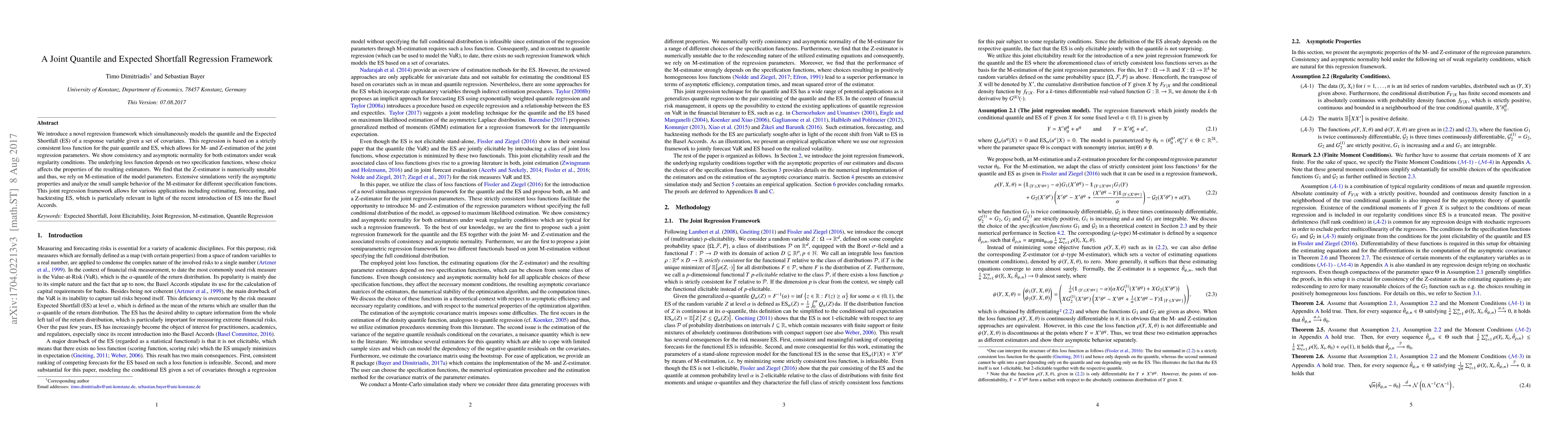 The paper introduces a new regression framework based on a strictly consistent loss function for joint modeling of quantiles and ES, providing M- and Z-estimators with theoretical guarantees of consistency and asymptotic normality.