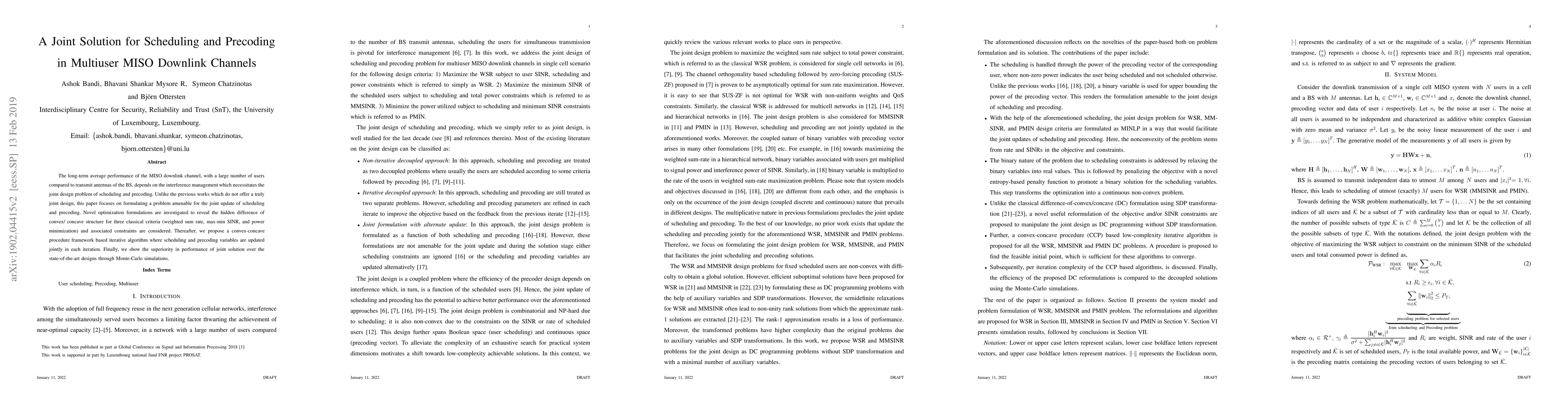 This paper proposes a novel joint optimization framework for scheduling and precoding in multiuser MISO downlink channels, addressing interference management through a convex-concave procedure. The study reveals the hidden convex/concave structures of three classical criteria and demonstrates superior performance over existing designs via simulations.