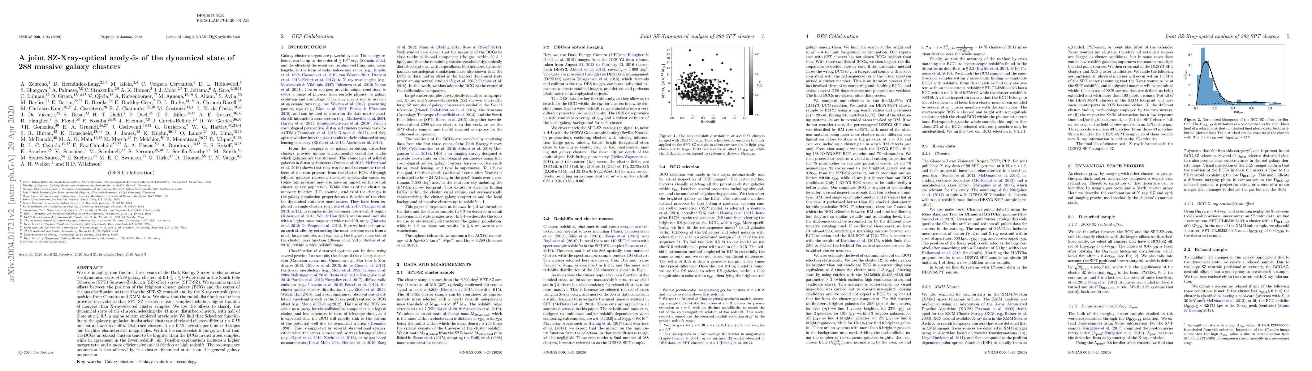 This study uses Dark Energy Survey imaging and South Pole Telescope SZ data to analyze the dynamical state of 288 massive galaxy clusters, finding no significant merger differences between SZ-selected and X-ray-selected clusters. It identifies 43 of the most disturbed clusters, revealing that disturbed clusters at higher redshifts have steeper faint-end galaxy slopes and brighter characteristic magnitudes compared to relaxed clusters.