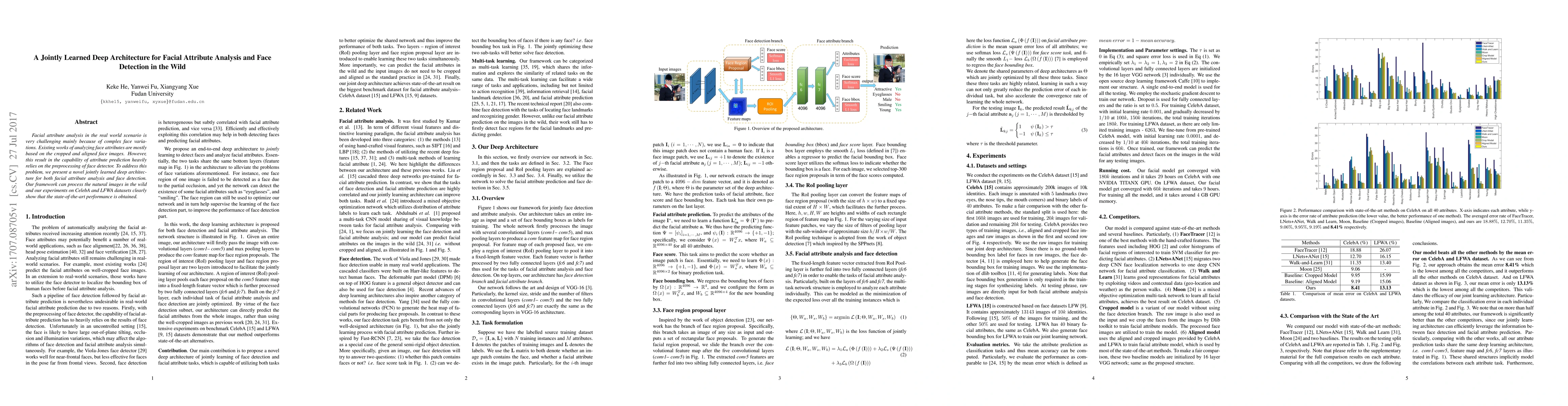 This paper proposes a jointly learned deep architecture for facial attribute analysis and face detection in natural images, achieving state-of-the-art performance on the CelebA and LFWA datasets without requiring cropped and aligned face images.
