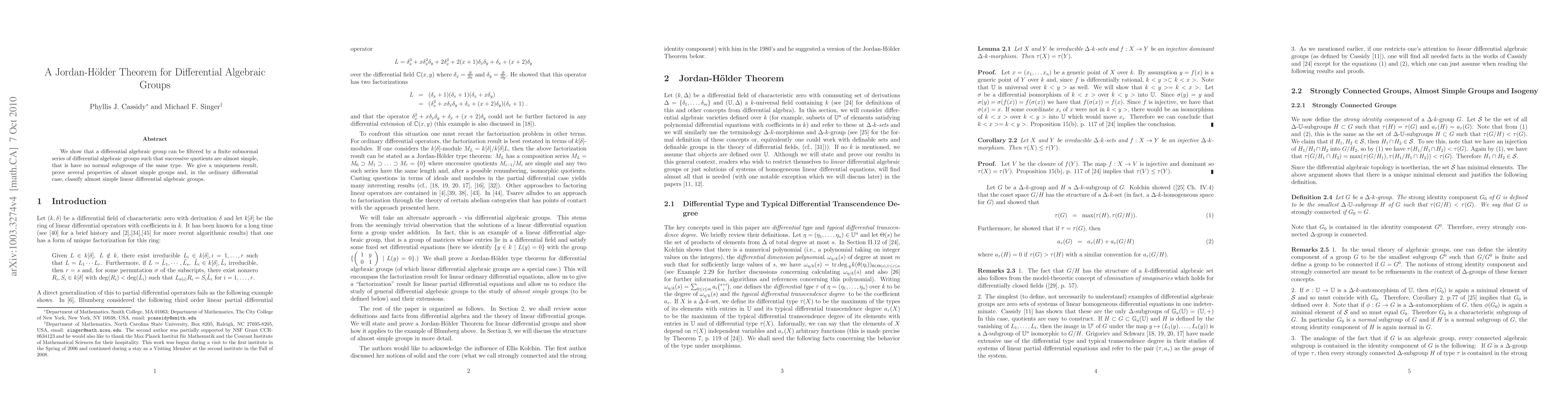 This paper establishes a Jordan-Hoelder theorem for differential algebraic groups, demonstrating a finite subnormal series with almost simple quotients and proving uniqueness. It also classifies almost simple linear differential algebraic groups in the ordinary differential case.