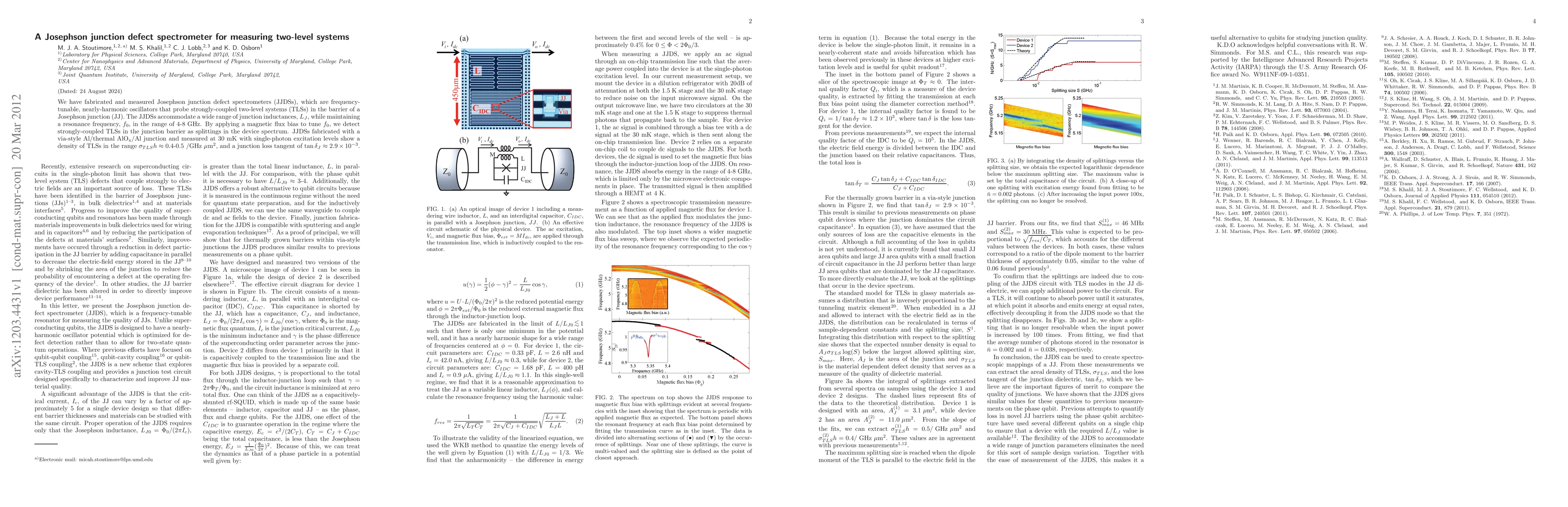 This paper presents a Josephson junction defect spectrometer (JJDS) capable of detecting strongly-coupled two-level systems (TLSs) in the barrier of a Josephson junction. The JJDS exhibits a resonance frequency of 4-8 GHz and can detect TLSs as splittings in its spectrum when tuned by magnetic flux.