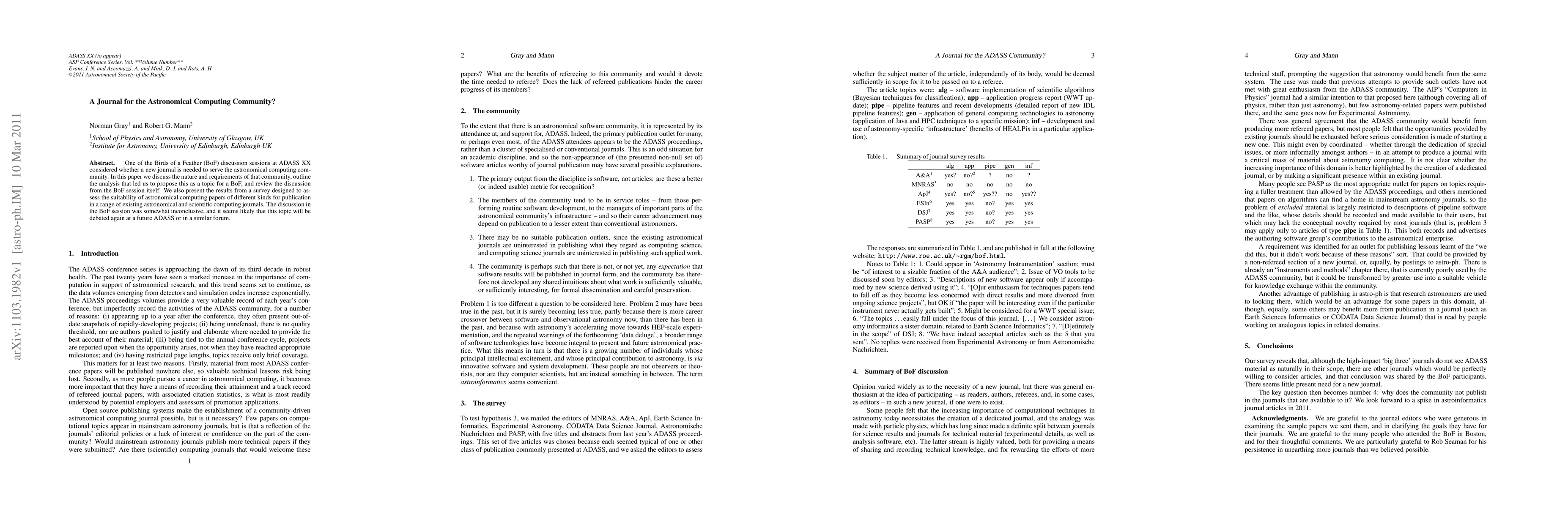 This paper discusses the need for a new journal dedicated to the astronomical computing community, based on a Birds of a Feather session and a subsequent survey. The analysis and survey results indicate a potential demand, though the discussion remains inconclusive, suggesting further debate is needed.