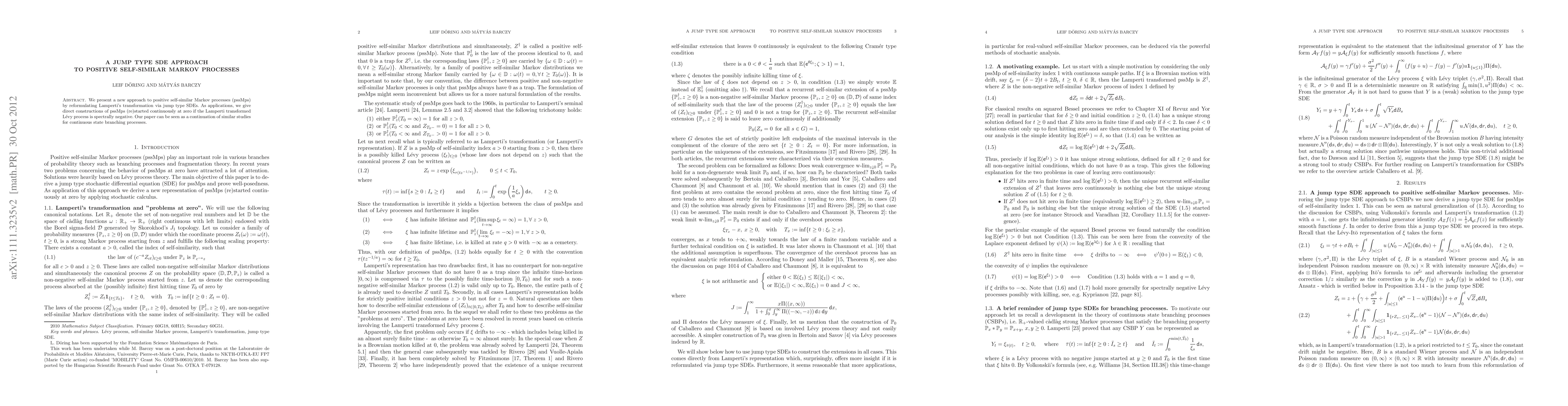 We present a new approach to positive self-similar Markov processes (pssMps) by reformulating Lamperti's transformation via jump type SDEs. As applications, we give direct constructions of pssMps (re)started continuously at zero if the Lamperti transformed Levy process is spectrally negative. Our paper can be seen as a continuation of similar studies for continuous state branching processes but the approach seems to be more fruitful in the context of pssMps.