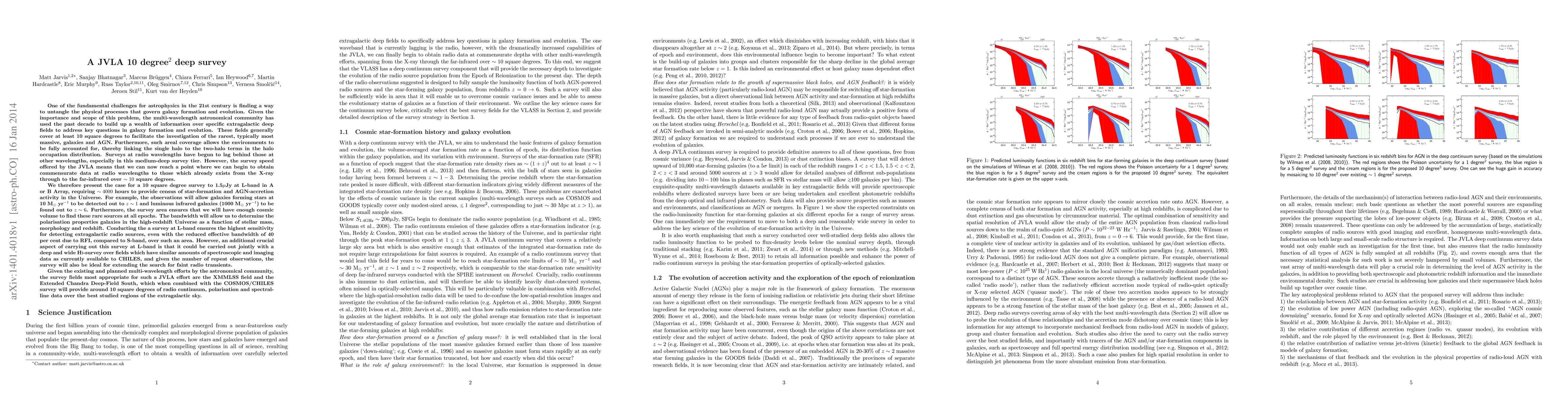 (Abridged)One of the fundamental challenges for astrophysics in the 21st century is finding a way to untangle the physical processes that govern galaxy formation and evolution. Given the importance and scope of this problem, the multi-wavelength astronomical community has used the past decade to build up a wealth of information over specific extragalactic deep fields to address key questions in galaxy formation and evolution. These fields generally cover at least 10square degrees to facilitate the investigation of the rarest, typically most massive, galaxies and AGN. Furthermore, such areal coverage allows the environments to be fully accounted for, thereby linking the single halo to the two-halo terms in the halo occupation distribution. Surveys at radio wavelengths have begun to lag behind those at other wavelengths, especially in this medium-deep survey tier. However, the survey speed offered by the JVLA means that we can now reach a point where we can begin to obtain commensurate data at radio wavelengths to those which already exists from the X-ray through to the far-infrared over ~10 square degrees. We therefore present the case for a 10 square degree survey to 1.5uJy at L-band in A or B Array, requiring ~4000 hours to provide census of star-formation and AGN-accretion activity in the Universe. For example, the observations will allow galaxies forming stars at 10Msolar/yr to be detected out to z~1 and luminous infrared galaxies (1000Msolar/yr to be found out to z~6. Furthermore, the survey area ensures that we will have enough cosmic volume to find these rare sources at all epochs. The bandwidth will allow us to determine the polarisation properties galaxies in the high-redshift Universe as a function of stellar mass, morphology and redshift.