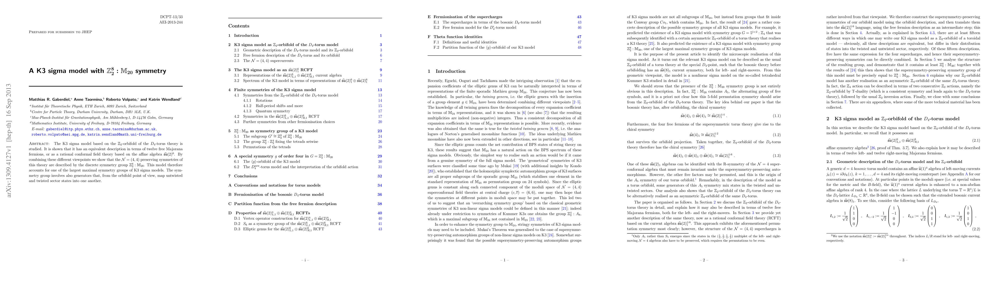 This paper investigates a K3 sigma model derived from a Z_2-orbifold of D_4-torus theory, demonstrating its equivalence to twelve free Majorana fermions or a rational conformal field theory based on su(2)^6. The study reveals that the model's N=(4,4) symmetries are encapsulated by the discrete symmetry group Z_2^8:M_{20}, representing one of the largest maximal symmetry groups for K3 sigma models.