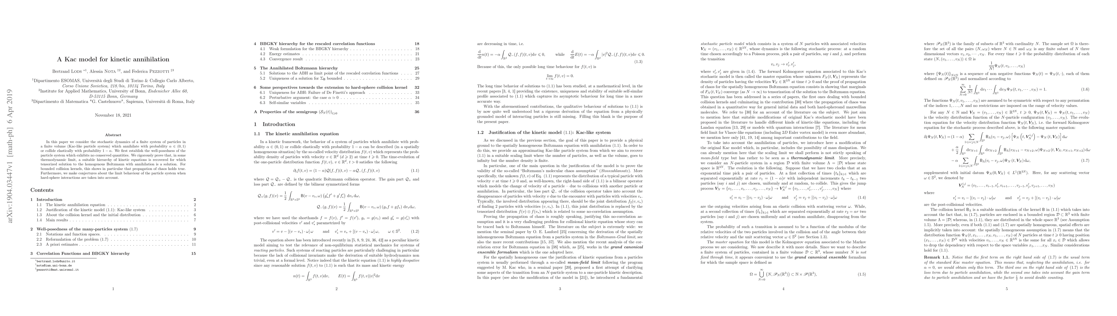 This paper studies a particle system with annihilation and elastic collision probabilities, proving its well-posedness and demonstrating that in a thermodynamic limit, a hierarchy of kinetic equations emerges. For bounded kernels, it shows propagation of chaos, and makes conjectures about the system's behavior under hard-sphere interactions.