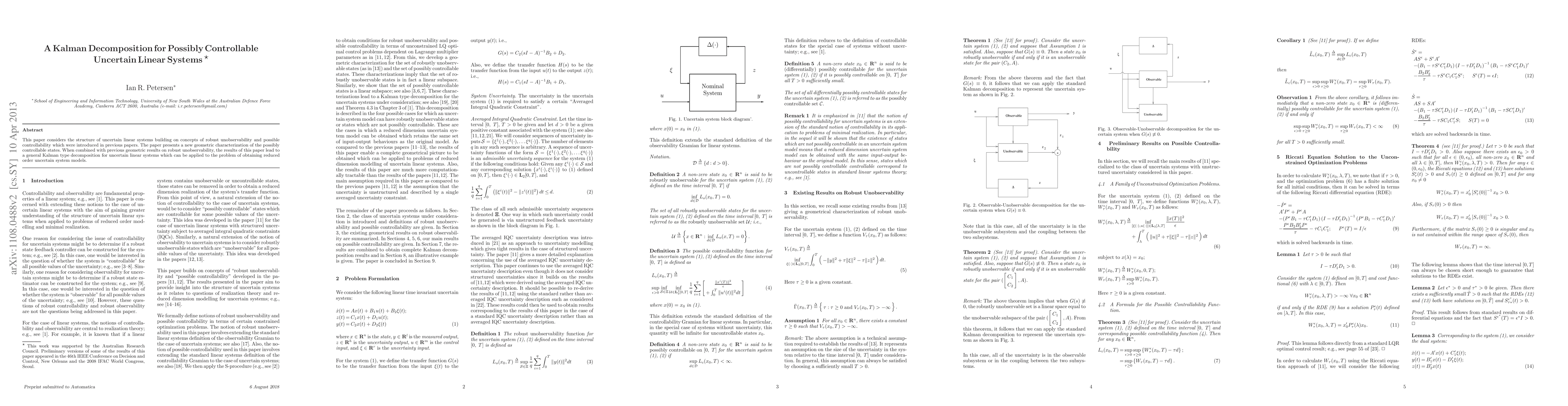 This paper considers the structure of uncertain linear systems building on concepts of robust unobservability and possible controllability which were introduced in previous papers. The paper presents a new geometric characterization of the possibly controllable states. When combined with previous geometric results on robust unobservability, the results of this paper lead to a general Kalman type decomposition for uncertain linear systems which can be applied to the problem of obtaining reduced order uncertain system models.