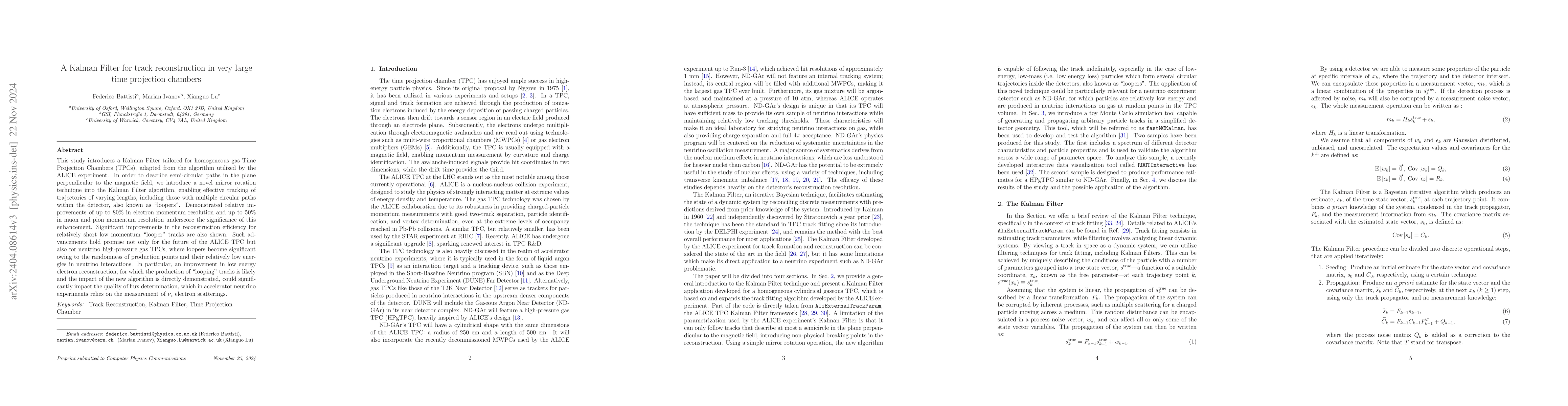 This paper presents a Kalman Filter optimized for tracking in large gas TPCs, introducing a mirror rotation technique for improved trajectory reconstruction. The method notably enhances momentum resolution by up to 80% for electrons and up to 50% for muons and pions, benefitting both ALICE experiments and neutrino TPCs.