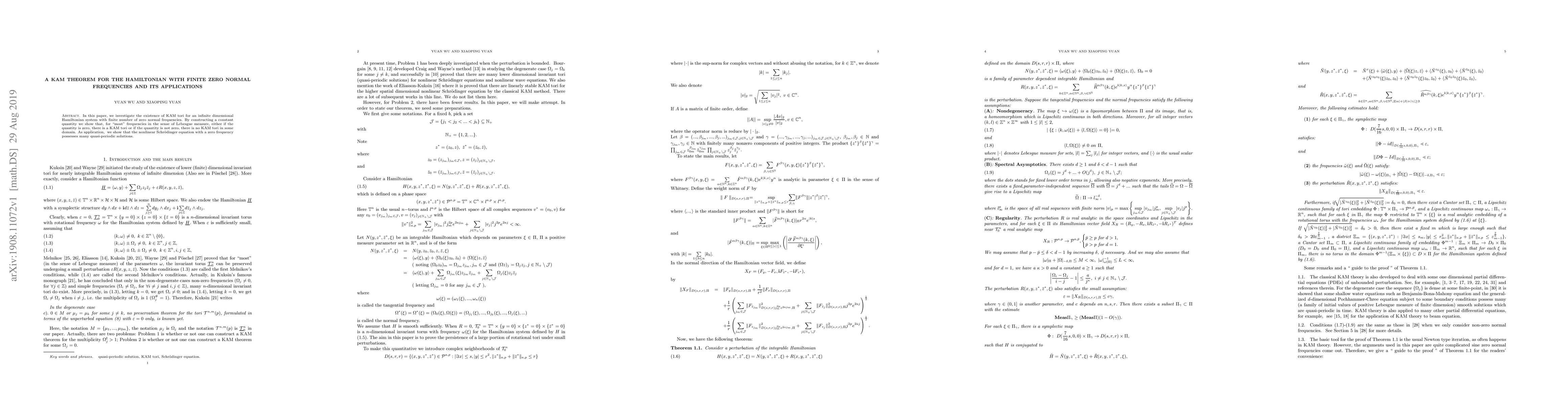 This paper proves the existence of KAM tori in an infinite-dimensional Hamiltonian system with finite zero normal frequencies, demonstrating that for most frequencies, the presence or absence of KAM tori depends on a constructed constant quantity. An application shows that the nonlinear Schrödinger equation with a zero frequency has many quasi-periodic solutions.