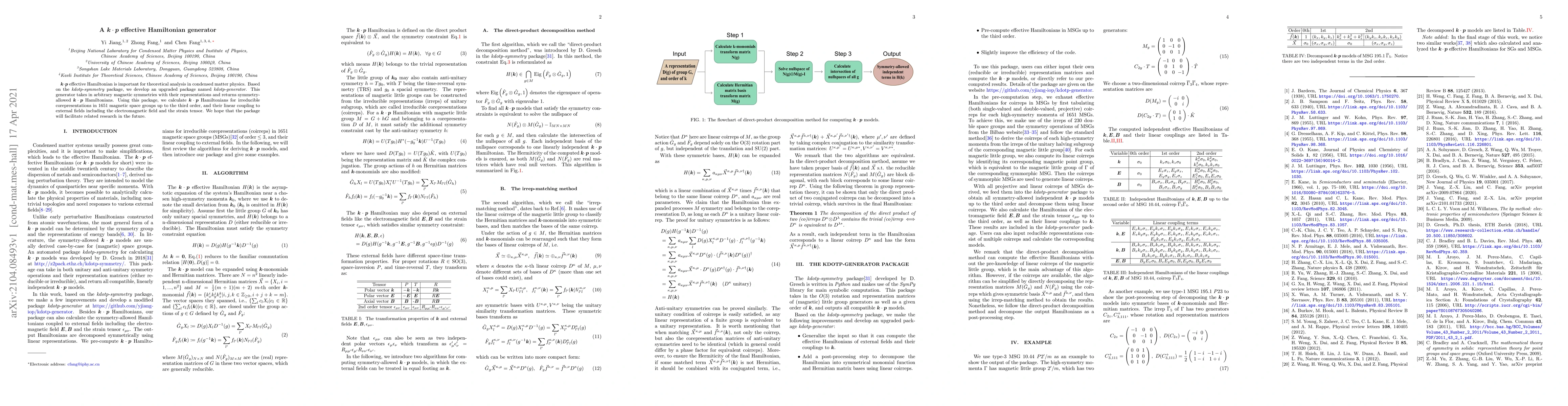 Researchers developed a new software package to generate $k extcdot p$ Hamiltonians for various magnetic symmetries, enabling more efficient theoretical analysis in condensed matter physics. The package allows calculation of Hamiltonians for 1651 magnetic space groups up to the third order and facilitates future research.