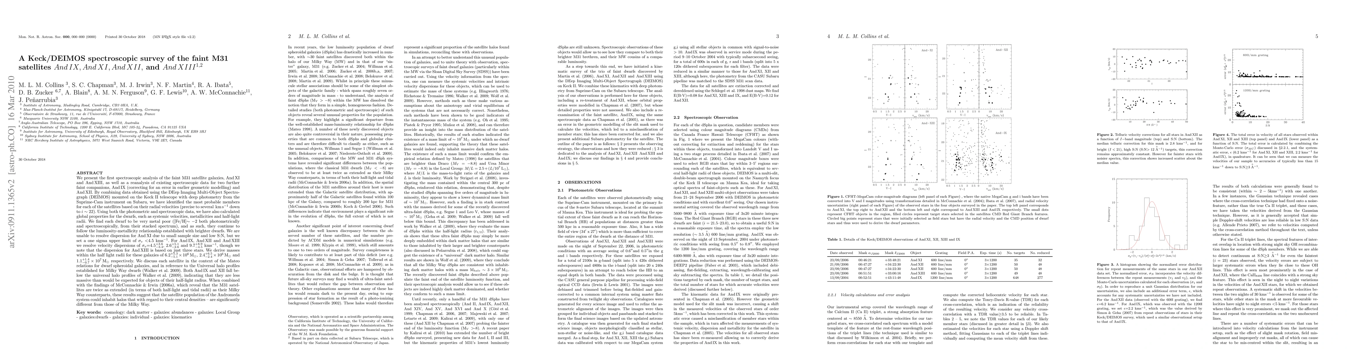 We present the first spectroscopic analysis of the faint M31 satellite galaxies, AndXI and AndXIII, and a reanalysis of existing spectroscopic data for two further faint companions, And IX and AndXII. By combining data obtained using the DEIMOS spectrograph mounted on the Keck II telescope with deep photometry from the Suprime-Cam instrument on Subaru, we have calculated global properties for the dwarfs, such as systemic velocities, metallicites and half-light radii.We find each dwarf to be very metal poor ([Fe/H] -2 both photometrically and spectroscopically, from their stacked spectrum), and as such, they continue to follow the luminosity-metallicity relationship established with brighter dwarfs. We are unable to resolve a dispersion for And XI due to small sample size and low S/N, but we set a one sigma upper limit of sigma-v <5 km/s. For And IX, And XII and And XIII we resolve velocity dispersions of v=4.5 (+3.4,-3.2), 2.6(+5.1,-2.6) and 9.7(+8.9,-4.5) km/s, and derive masses within the half light radii of 6.2(+5.3,-5.1)x10^6 Msun, 2.4 (+6.5,-2.4)x10^6 Msun and 1.1(+1.4,-0.7)x10^7 Msun respectively. We discuss each satellite in the context of the Mateo relations for dwarf spheroidal galaxies, and the Universal halo profiles established for Milky Way dwarfs (Walker et al. 2009). For both galaxies, this sees them fall below the Universal halo profiles of Walker et al. (2009). When combined with the findings of McConnachie & Irwin (2006a), which reveal that the M31 satellites are twice as extended (in terms of both half-light and tidal radii) as their Milky Way counterparts, these results suggest that the satellite population of the Andromeda system could inhabit halos that are significantly different from those of the Milky Way in terms of their central densities (abridged).