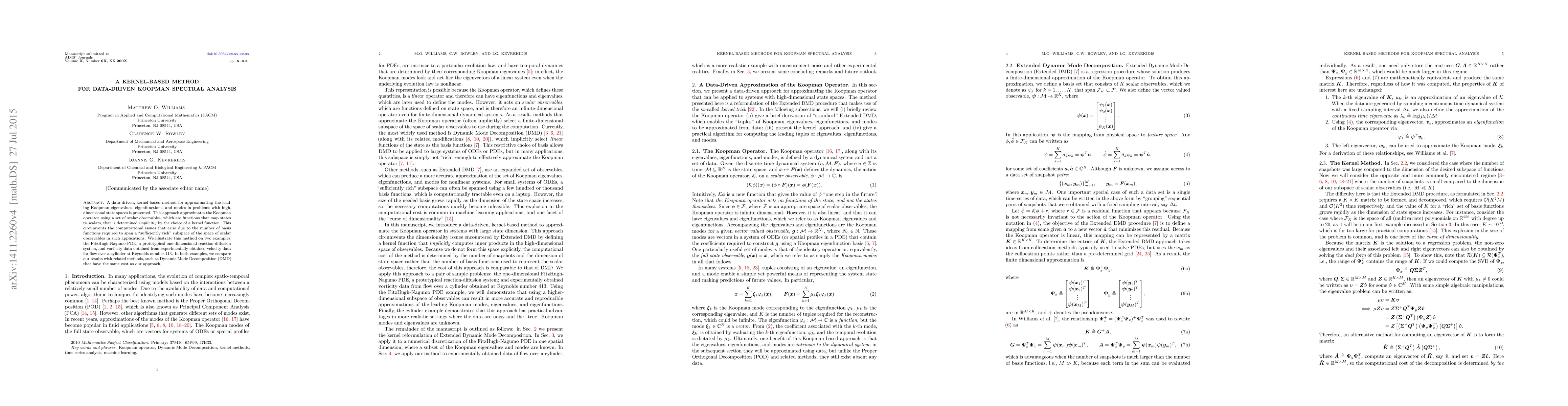 Researchers present a data-driven method for approximating Koopman spectral analysis in high-dimensional state spaces, outperforming Dynamic Mode Decomposition on a reaction diffusion system.