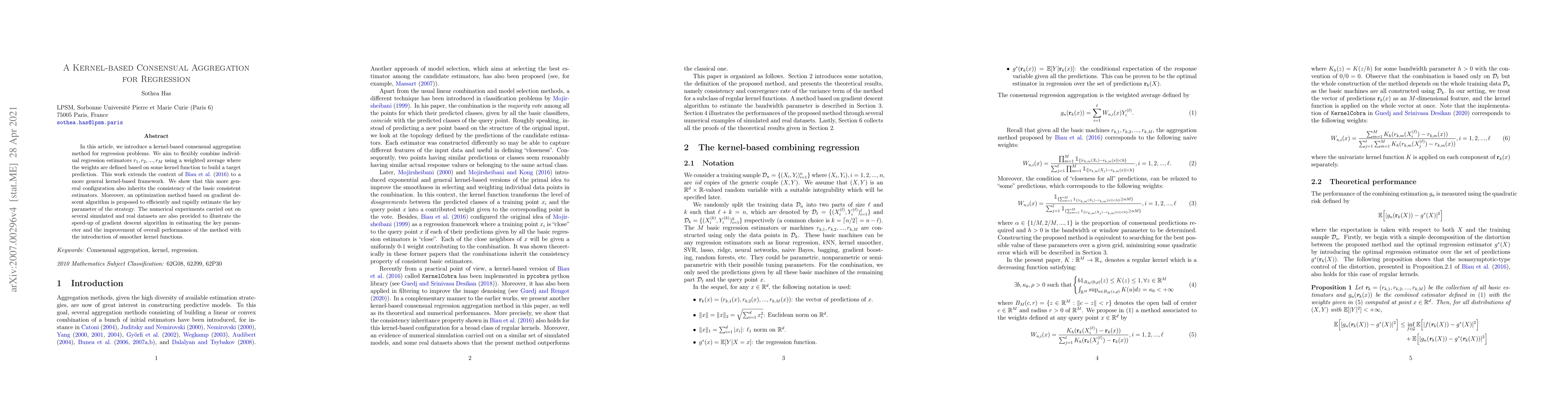 A new method for combining regression models using a kernel-based approach is introduced, showing improved performance with smoother kernel functions. The method also inherits the consistency of basic consistent estimators through an optimization algorithm based on gradient descent.
