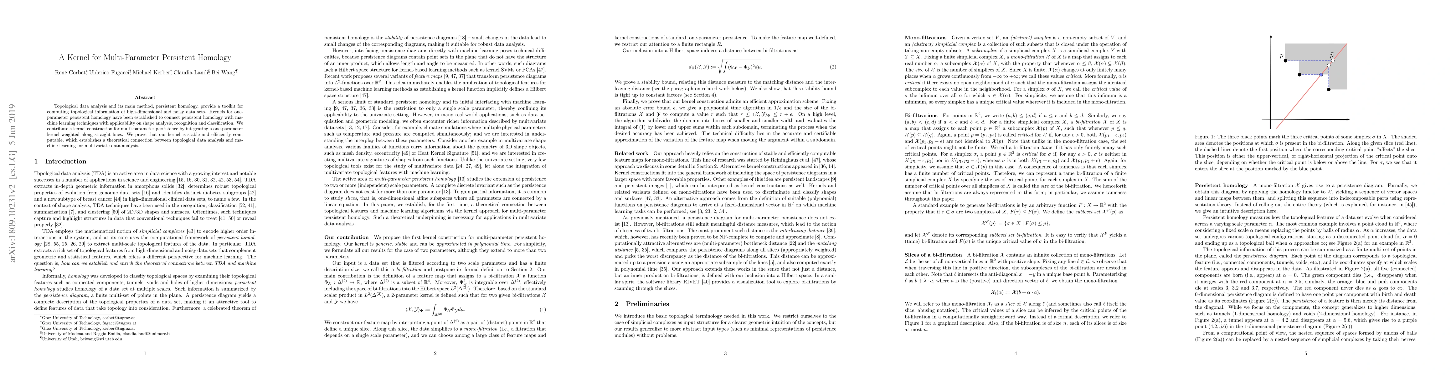 This paper introduces a kernel for multi-parameter persistent homology, integrating a one-parameter kernel along straight lines to connect topological data analysis with machine learning. The proposed kernel is proven to be stable and efficiently computable, facilitating multivariate data analysis.