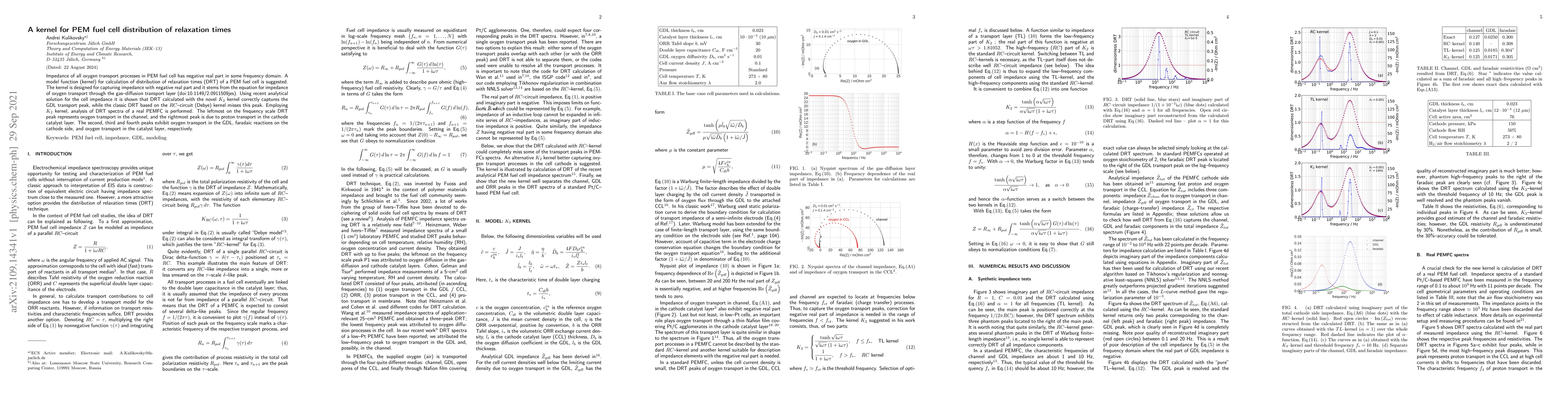 This paper proposes a new kernel function, $K_2$, for calculating the distribution of relaxation times (DRT) in PEM fuel cells, which accurately captures the impedance with a negative real part. The $K_2$ kernel better identifies the gas-diffusion layer transport peak compared to the traditional RC-circuit (Debye) kernel, as demonstrated through analysis of real PEMFC data.