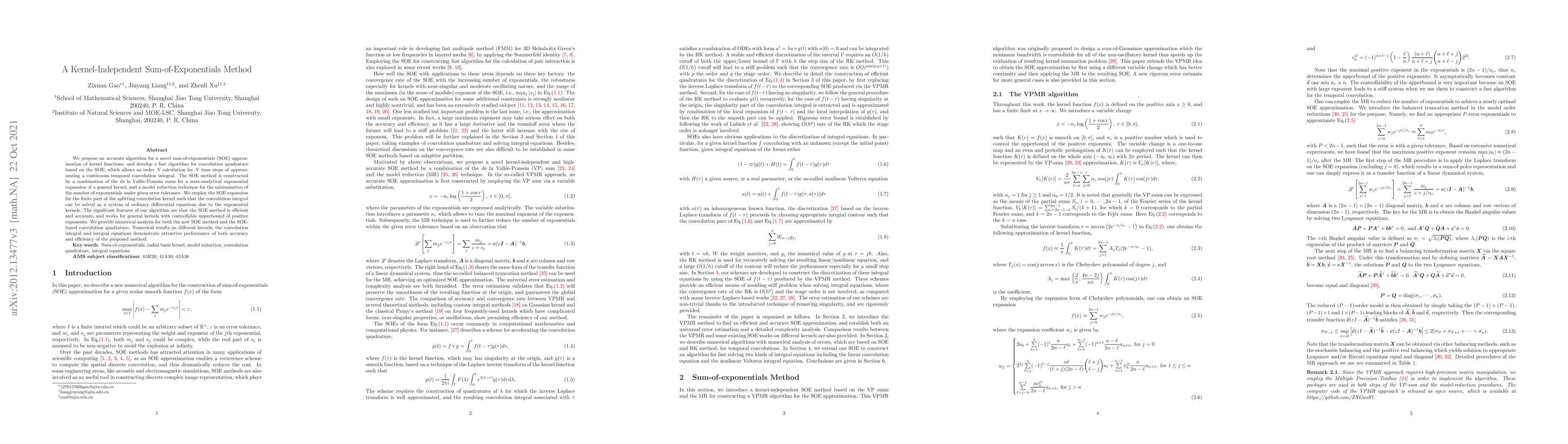 This paper introduces a kernel-independent sum-of-exponentials (SOE) method for approximating kernel functions and develops a fast convolution quadrature algorithm based on SOE. The proposed method is efficient, accurate, and applicable to general kernels with a controllable upperbound of positive exponents, as demonstrated by numerical analysis.
