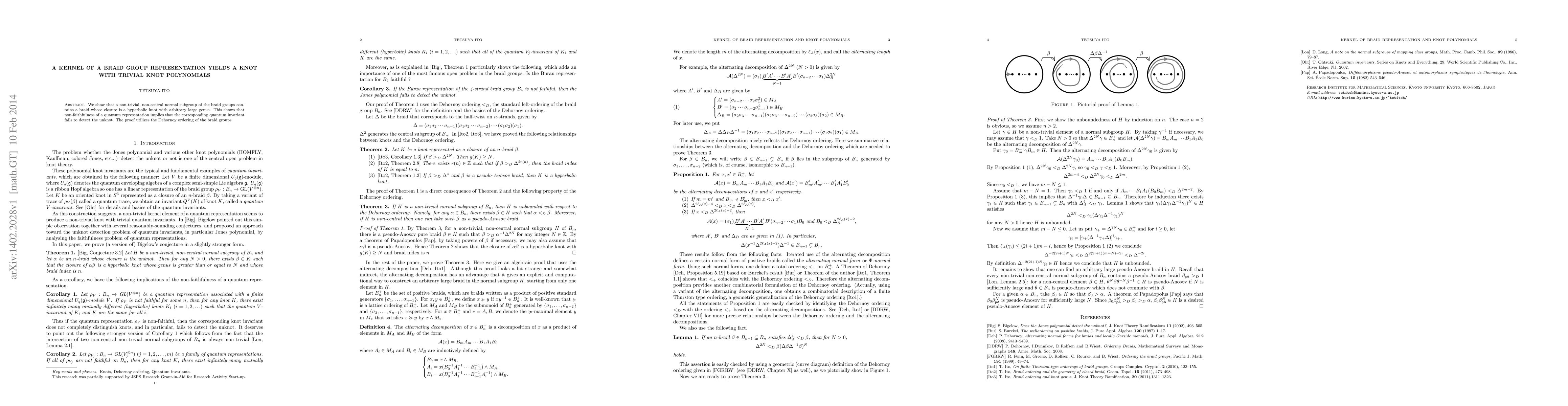 This paper demonstrates that non-central normal subgroups of braid groups contain braids whose closures are hyperbolic knots with large genus, indicating that non-faithful quantum representations fail to distinguish the unknot. The proof leverages the Dehornoy ordering system of braid groups.