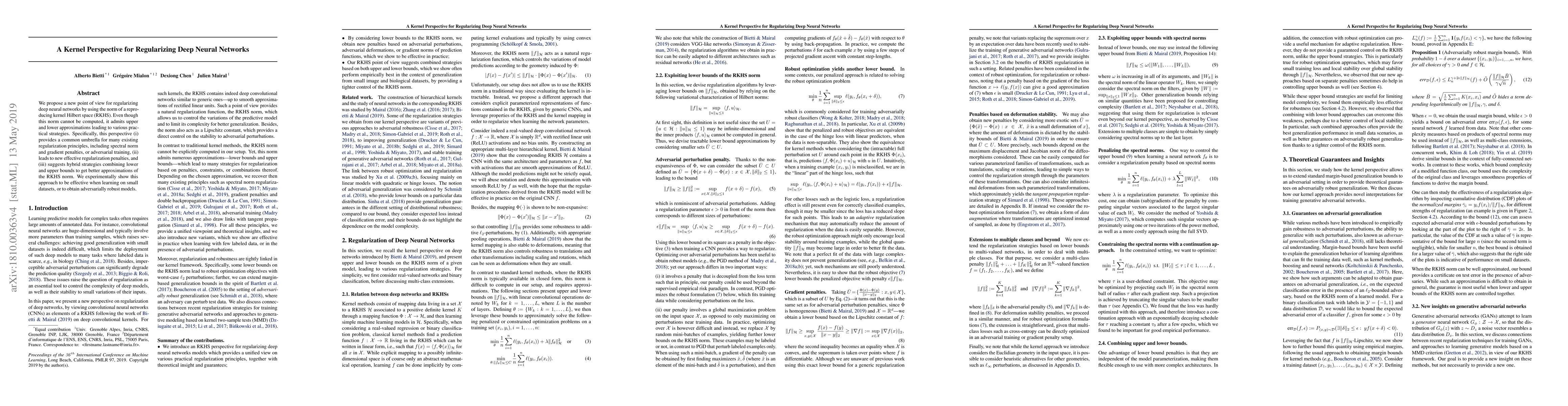 We propose a new point of view for regularizing deep neural networks by using the norm of a reproducing kernel Hilbert space (RKHS). Even though this norm cannot be computed, it admits upper and lower approximations leading to various practical strategies. Specifically, this perspective (i) provides a common umbrella for many existing regularization principles, including spectral norm and gradient penalties, or adversarial training, (ii) leads to new effective regularization penalties, and (iii) suggests hybrid strategies combining lower and upper bounds to get better approximations of the RKHS norm. We experimentally show this approach to be effective when learning on small datasets, or to obtain adversarially robust models.