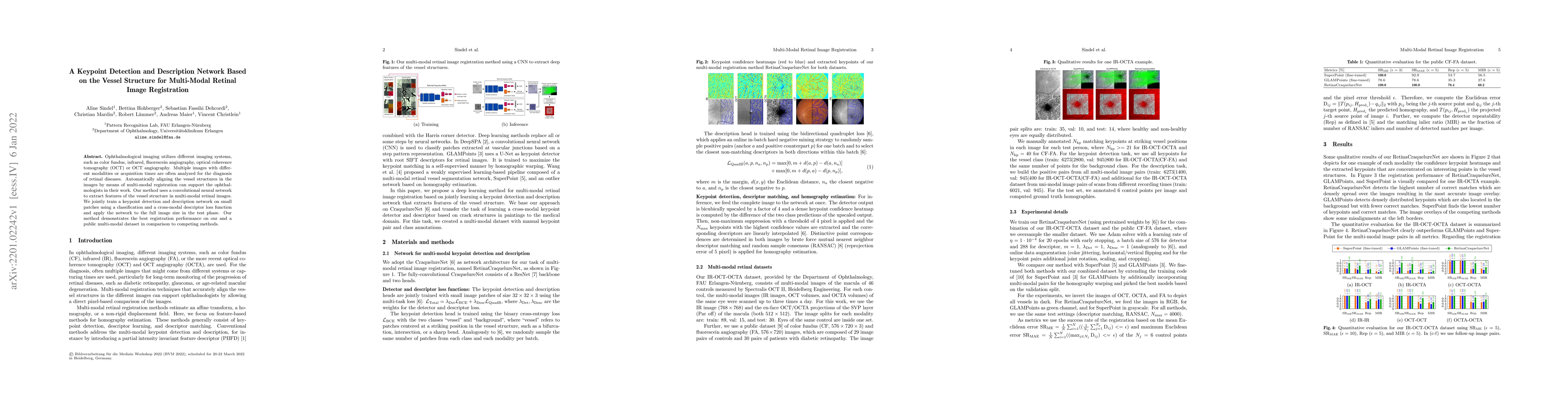 This paper proposes a convolutional neural network for detecting and describing keypoints based on vessel structures in multi-modal retinal images to enhance registration accuracy. The method achieves superior performance in aligning different imaging modalities compared to existing techniques.