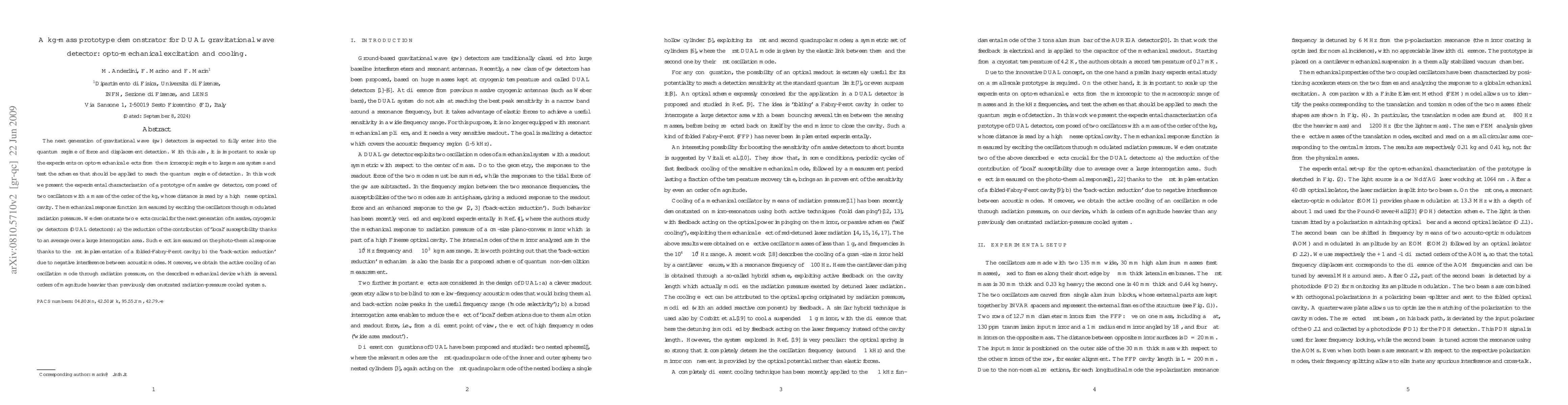 The next generation of gravitational wave (gw) detectors is expected to fully enter into the quantum regime of force and displacement detection. With this aim, it is important to scale up the experiments on opto-mechanical effects from the microscopic regime to large mass systems and test the schemes that should be applied to reach the quantum regime of detection. In this work we present the experimental characterization of a prototype of massive gw detector, composed of two oscillators with a mass of the order of the kg, whose distance is read by a high finesse optical cavity. The mechanical response function is measured by exciting the oscillators though modulated radiation pressure. We demonstrate two effects crucial for the next generation of massive, cryogenic gw detectors (DUAL detectors): a) the reduction of the contribution of 'local' susceptibility thanks to an average over a large interrogation area. Such effect is measured on the photo-thermal response thanks to the first implementation of a folded-Fabry-Perot cavity; b) the 'back-action reduction' due to negative interference between acoustic modes. Moreover, we obtain the active cooling of an oscillation mode through radiation pressure, on the described mechanical device which is several orders of magnitude heavier than previously demonstrated radiation-pressure cooled systems.